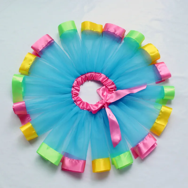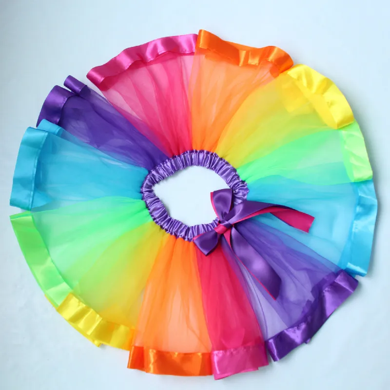 2018 Summer Rainbow Tutu Skirt Girl Pettiskirt Bowknot Children Show Dance Skirt For Short Tutu Girls
