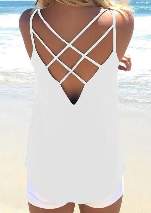 2018 Summer Sexy Spaghetti Strap Tank Top Plus Size Women Sexy Backless Camisole Top Female Casual Loose Tank Top Vest Shirt