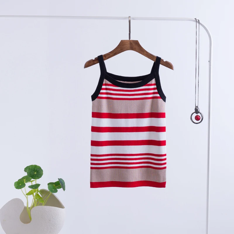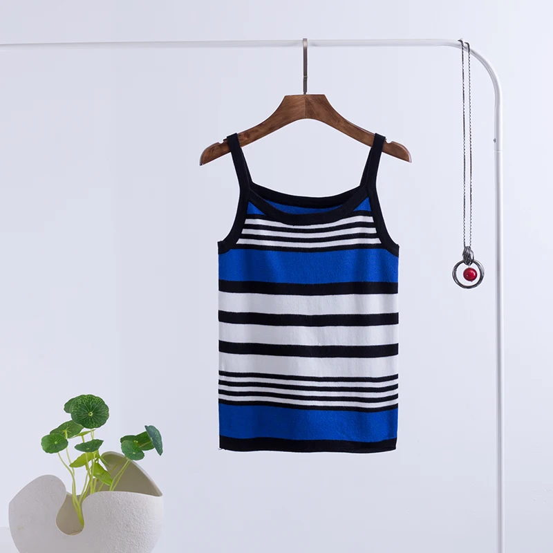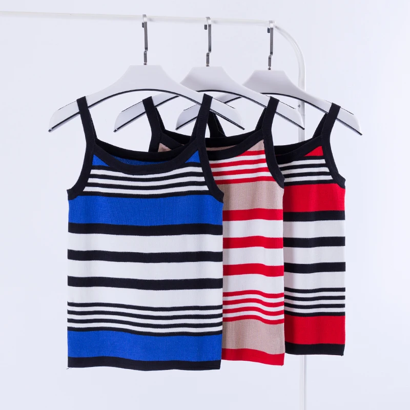 2018 Summer Sexy Stripe T-shirts Tank Top Knitted Self-cultivati Sleeveless Camisole Tops Women’s Vest
