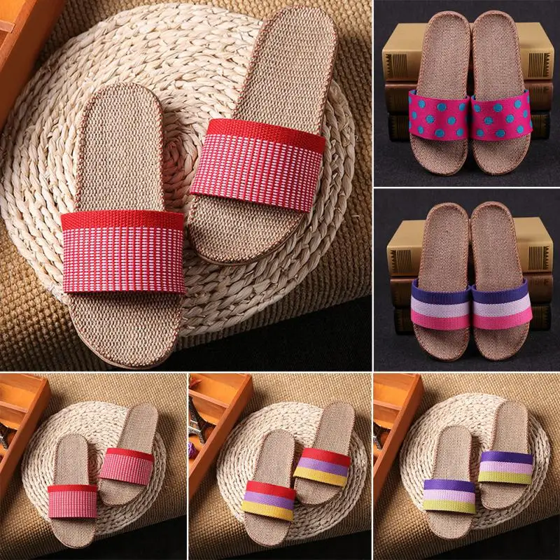 2018 Summer Slippers Unisex New Linen Couples Bedroom Indoor Shoes Anti-skid slippers