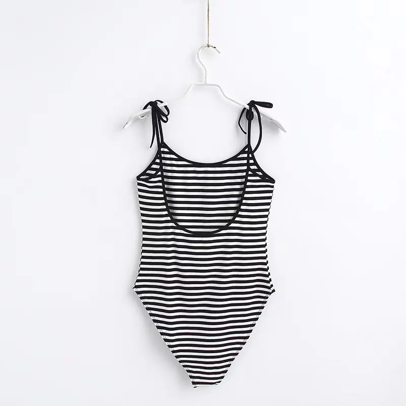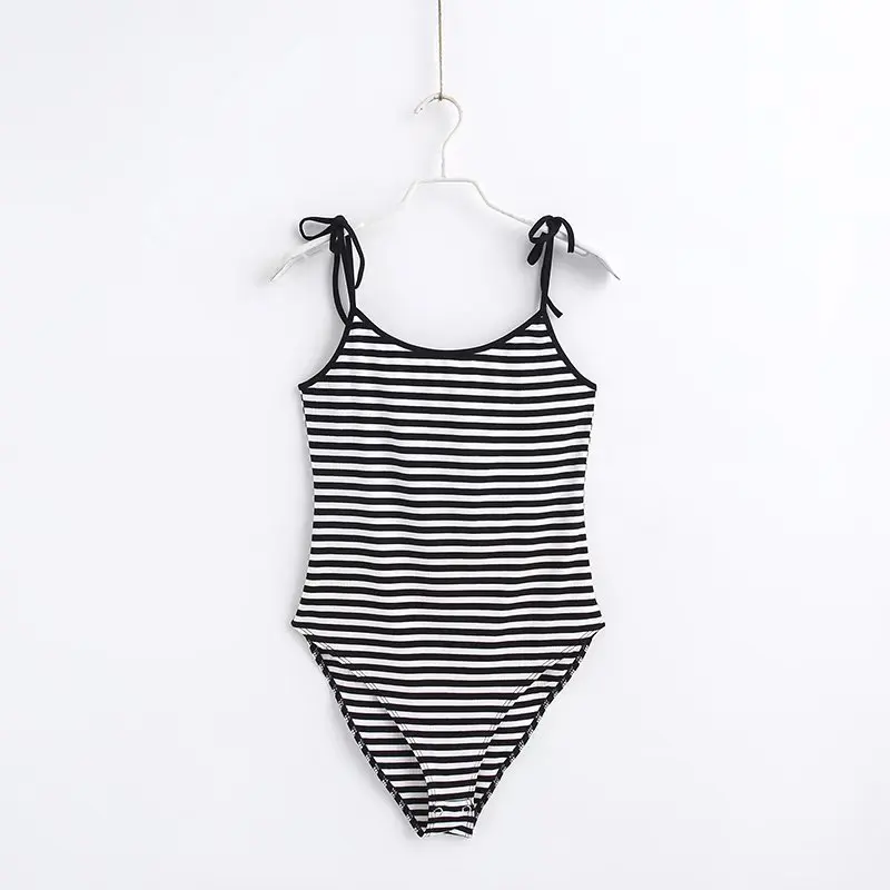 2018 Summer Spaghetti Strap Sexy Backless Bodysuit Women Bodycon Camisole Bodysuits Black White stripes Jumpsuits Tops