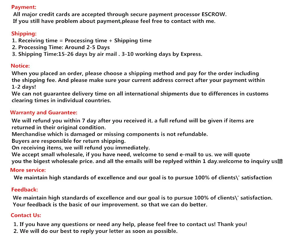 *You can submit refund requests within 15 days after the guaranteed period for delivery (45 days) has expired. You can do it by sending a message on Contact Us page