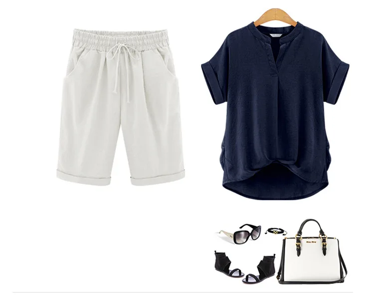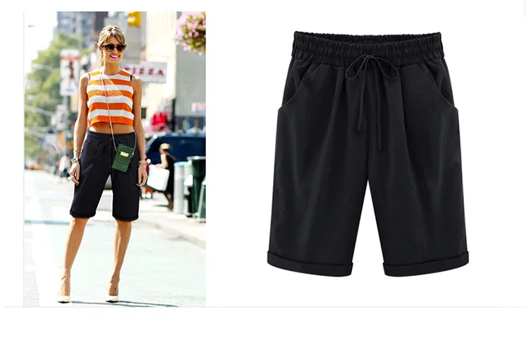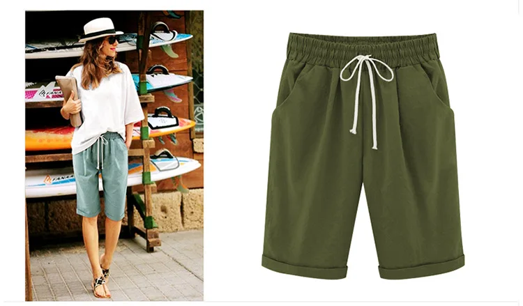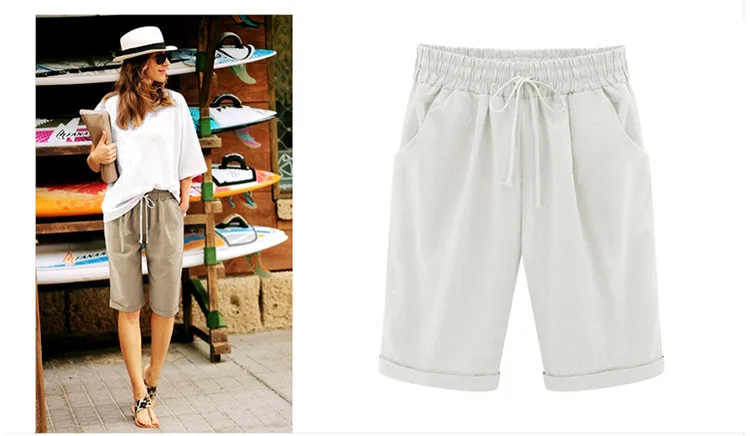 2018 Summer Woman Cotton linen harem pants Plus size Lady Casual Short Trousers candy Color Khaki black red blue pink M-6XL
