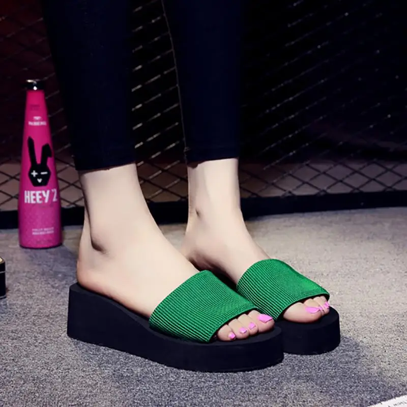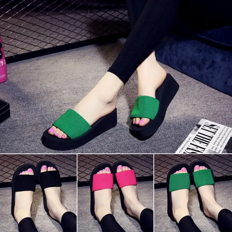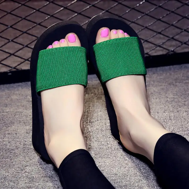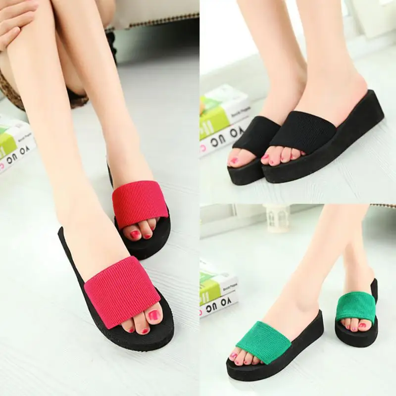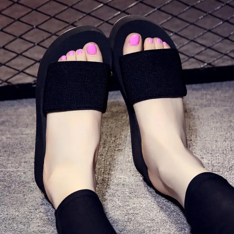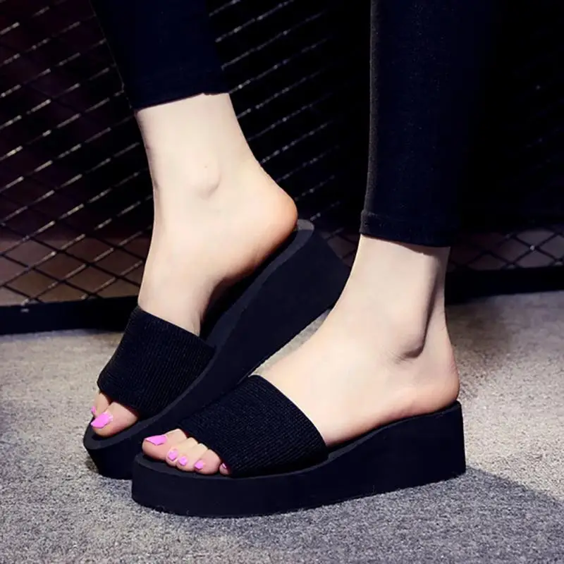 2018 Summer Woman Shoes Platform bath slippers Wedge Beach Flip Flops High Heel Slippers For Women Brand Black Eva Ladies Shoes
