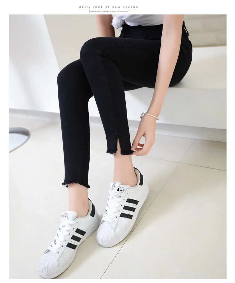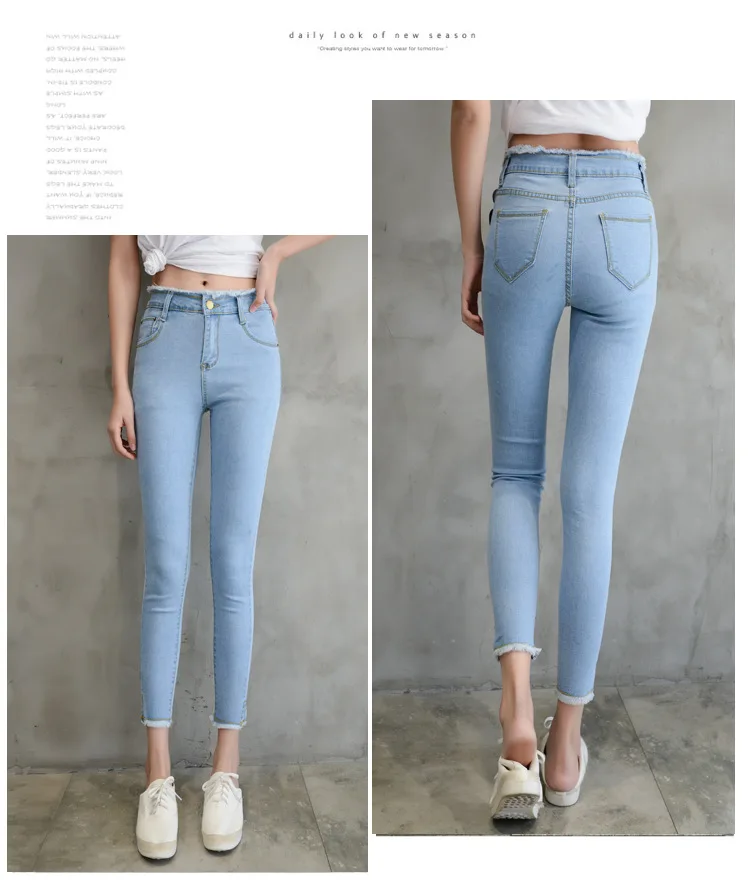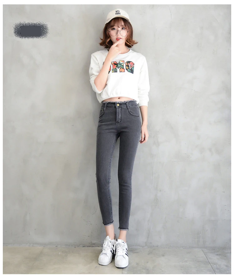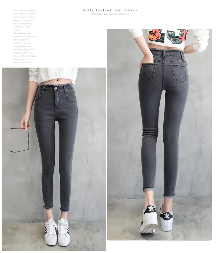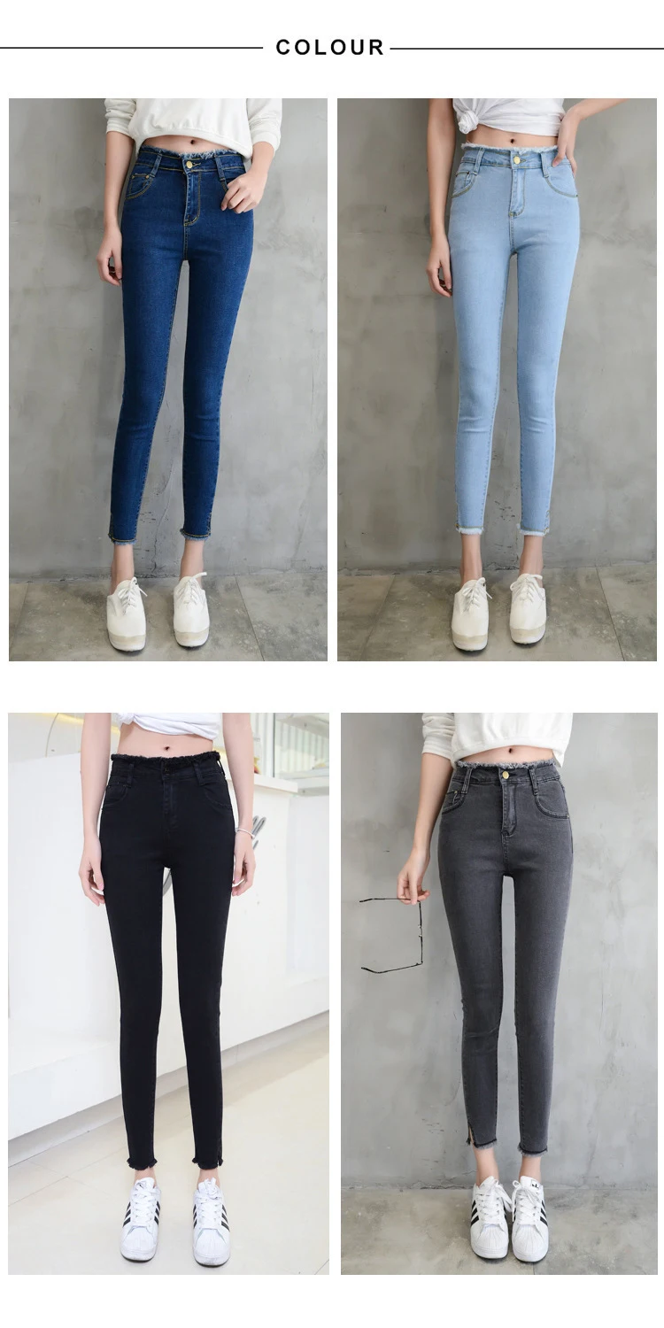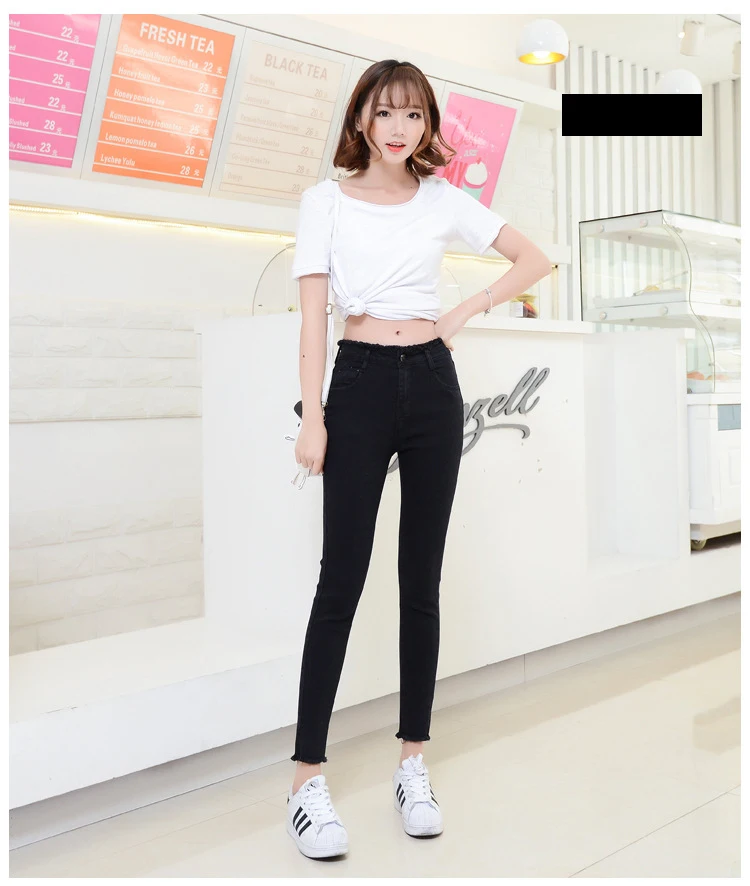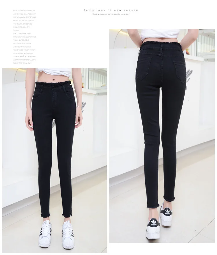 2018 Summer Women Ankle-Length Black Jeans Students High Waist Stretch Skinny Female Tassel Pencil Pants Denim Ladies Trousers