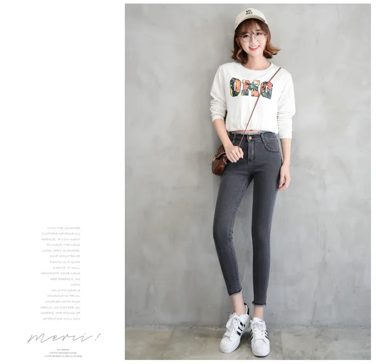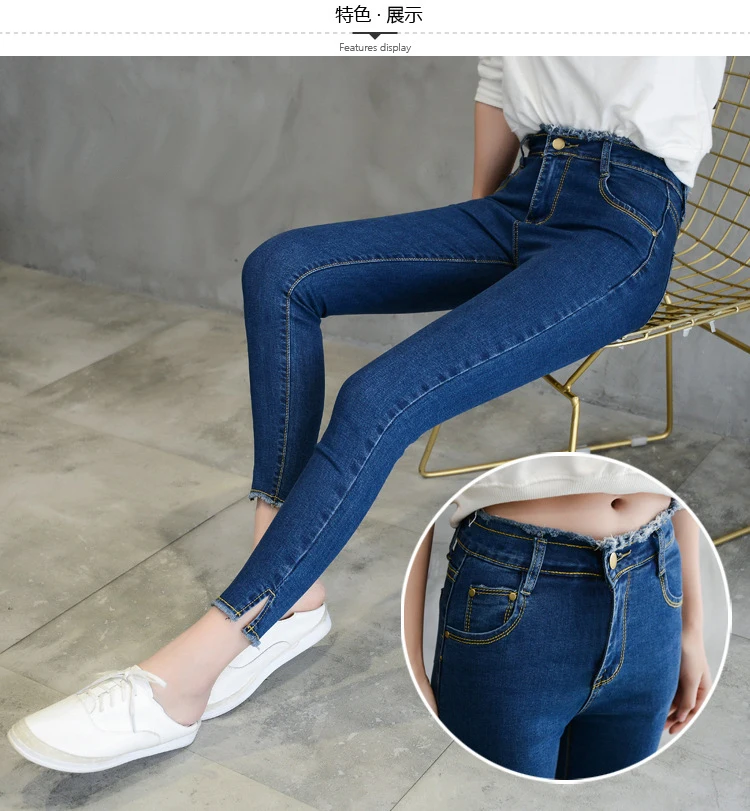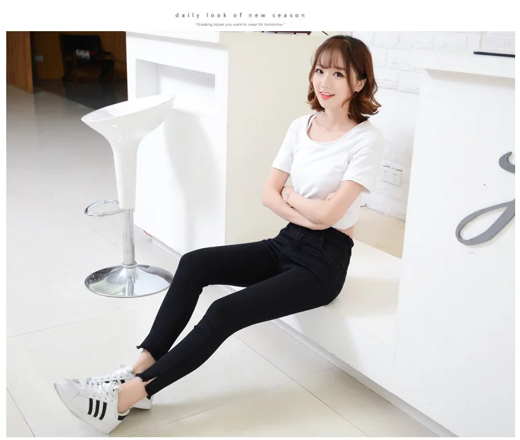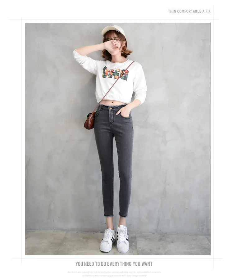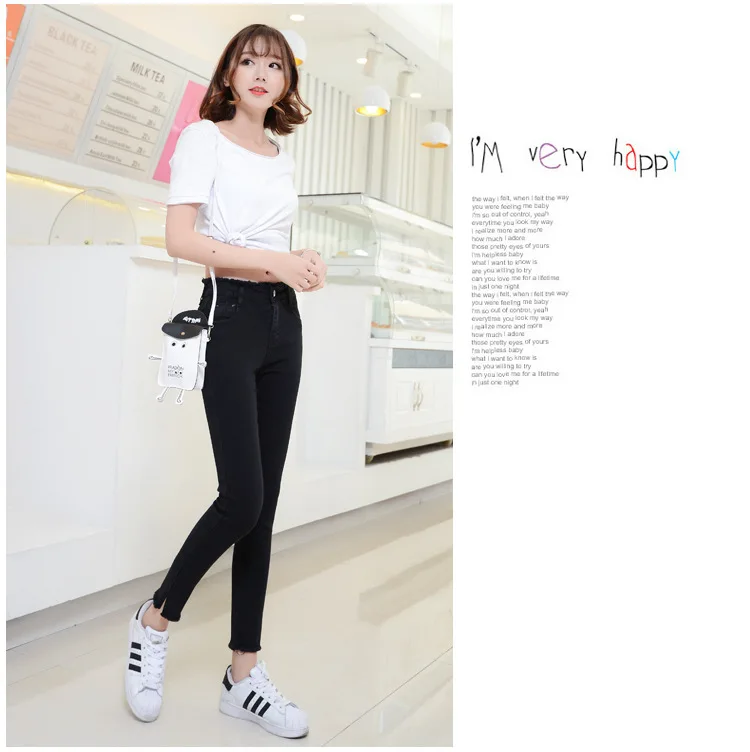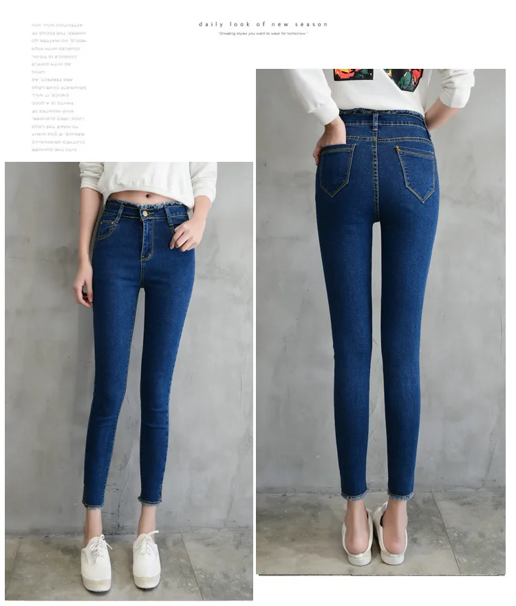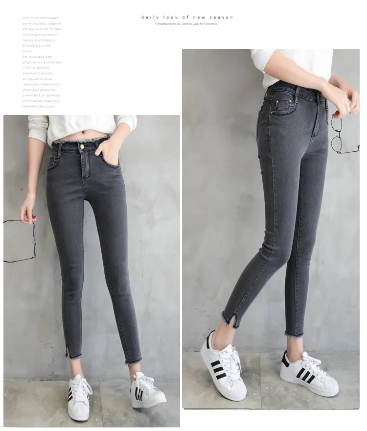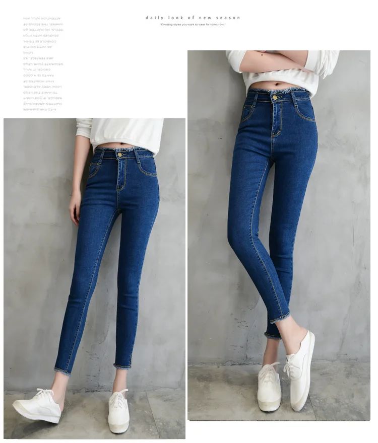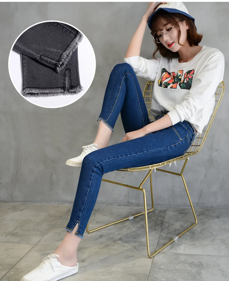 2018 Summer Women Ankle-Length Black Jeans Students High Waist Stretch Skinny Female Tassel Pencil Pants Denim Ladies Trousers
