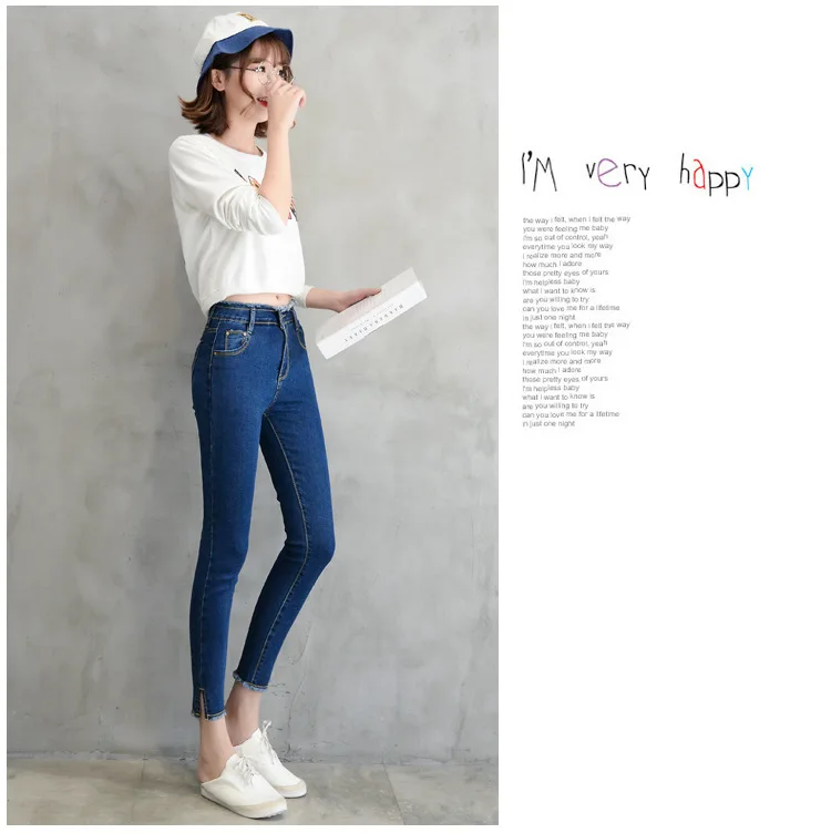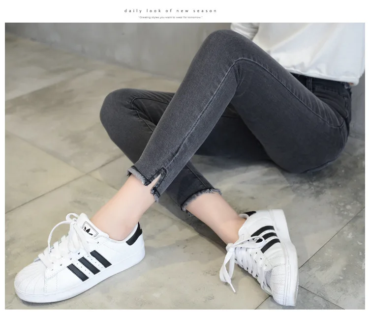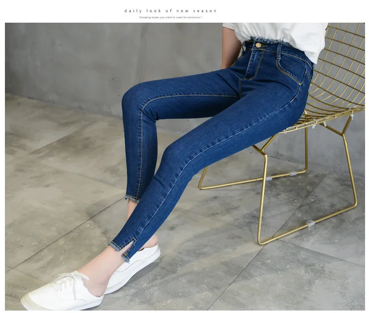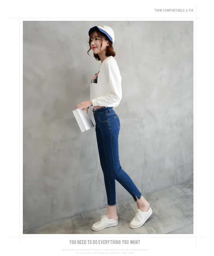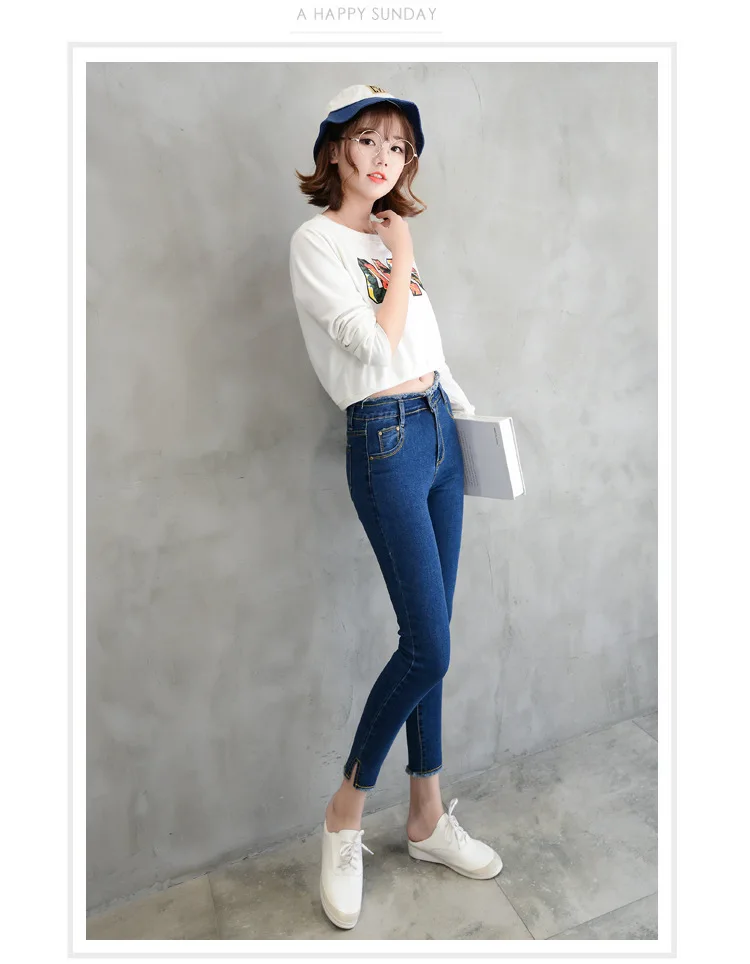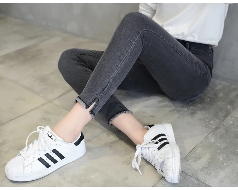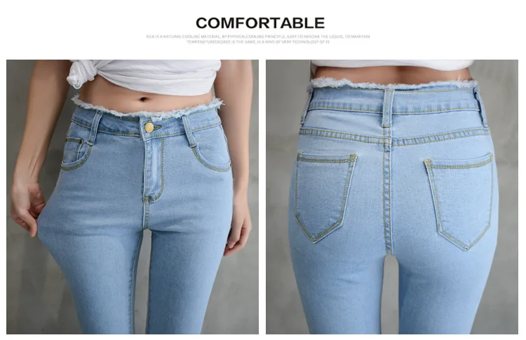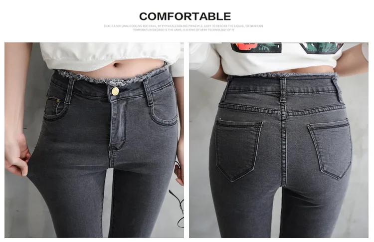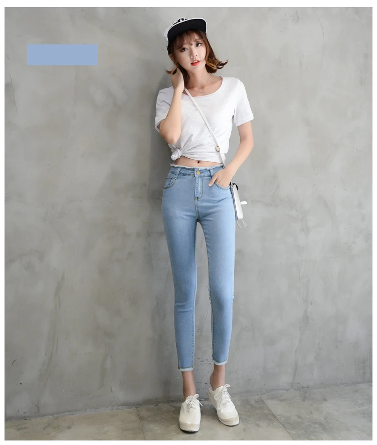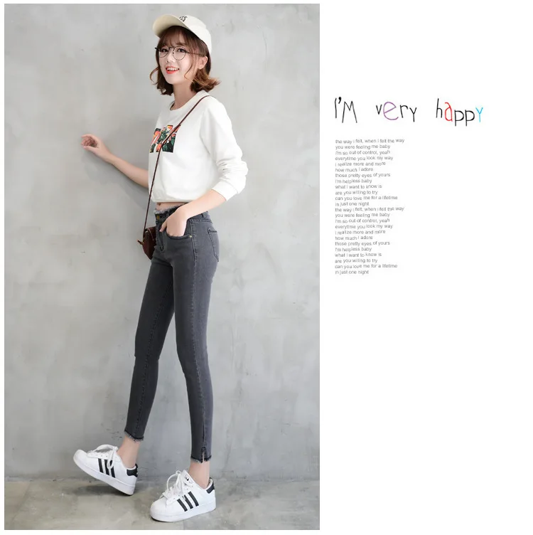 2018 Summer Women Ankle-Length Black Jeans Students High Waist Stretch Skinny Female Tassel Pencil Pants Denim Ladies Trousers