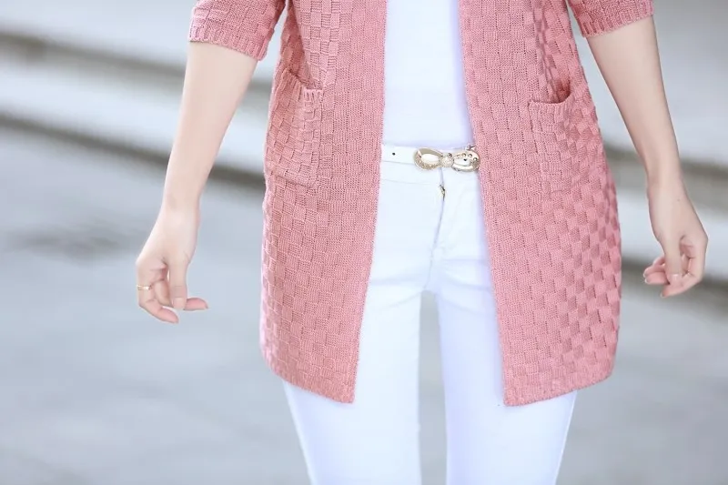 2018 Summer Women Cardigan Casual Long Sleeve Knitted Cardigans Ladies Sweaters Fashion Long Cardigan Coat With Pockets