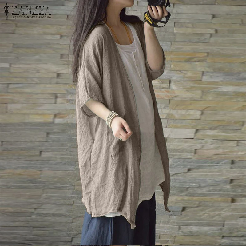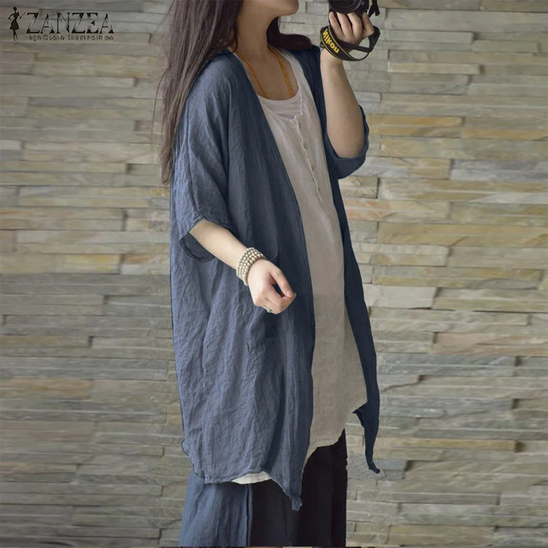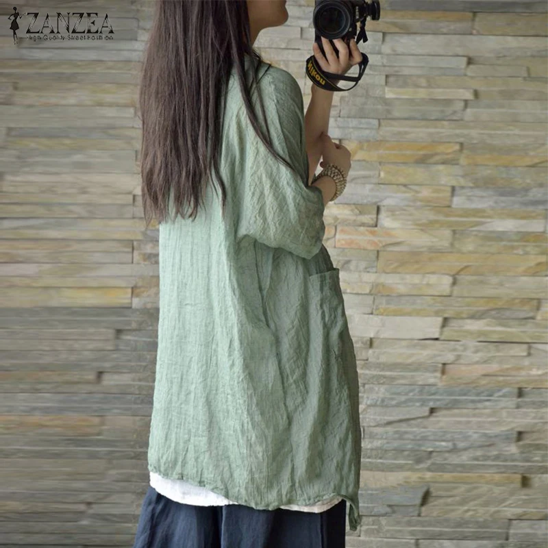 2018 Summer ZANZEA Women V Neck 3/4 Sleeve Pockets Baggy Cover Up Shirt Casual Solid Loose Cardigan Beach Party Top Blouse S 5XL