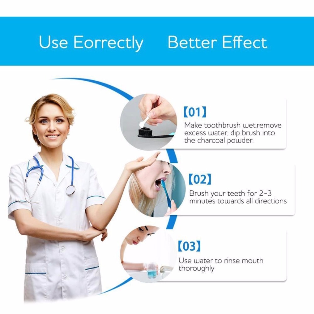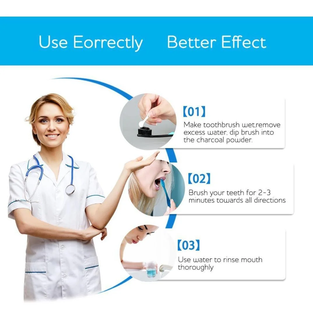 Cool Taste:The excellent icy and cool taste could eliminate ozostomia, prevent dental plaque, and provide you with fresh taste. Function of Tooth Powder: Whiten your teeth completely and naturally. Especially for people who with black teeth and yellow teeth caused by smoking, tea drinking, coffee and wine, Remove tartar and peculiar smell, Leaving your mouth clean and fresh. Keep your gingival more healthy. Long-term use of this product shall help to keep periodontal problems away. It is used to soak up harmful or toxic substances that your body can’t digest. Activated charcoal can only absorb toxins or chemicals that are still in your stomach and intestines. The charcoal and toxins are then removed from your system when you have a bowel movement. Anti inflammatory properties make it great to use on various bug bites and in cosmetic masks. In soap and cleansers, it is used to draw out impurities from the skin and reduce acne. As a teeth whitener it absorbs impurities and whitens teeth when used regularly.