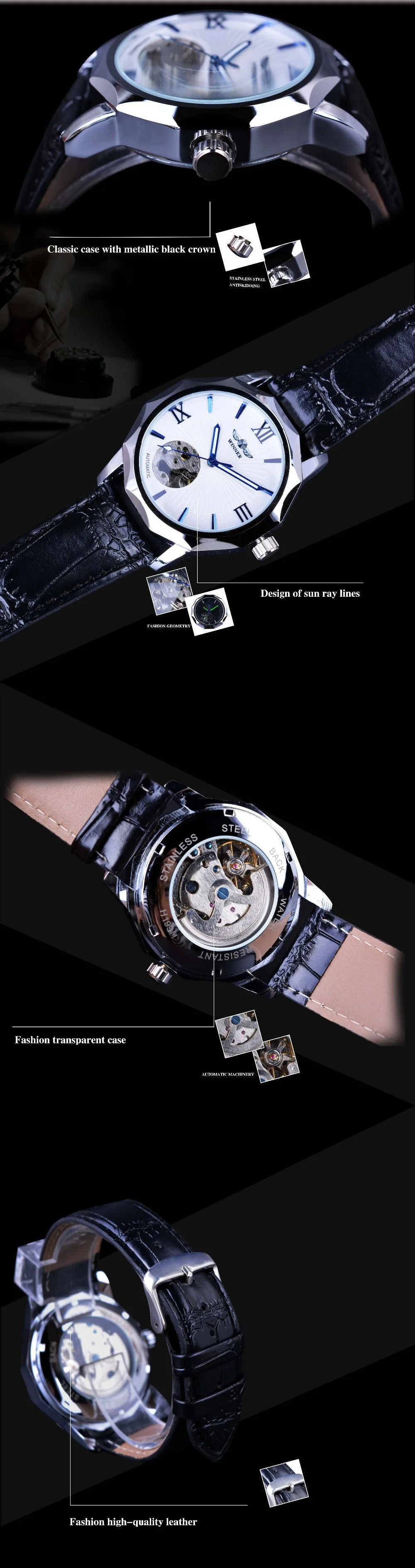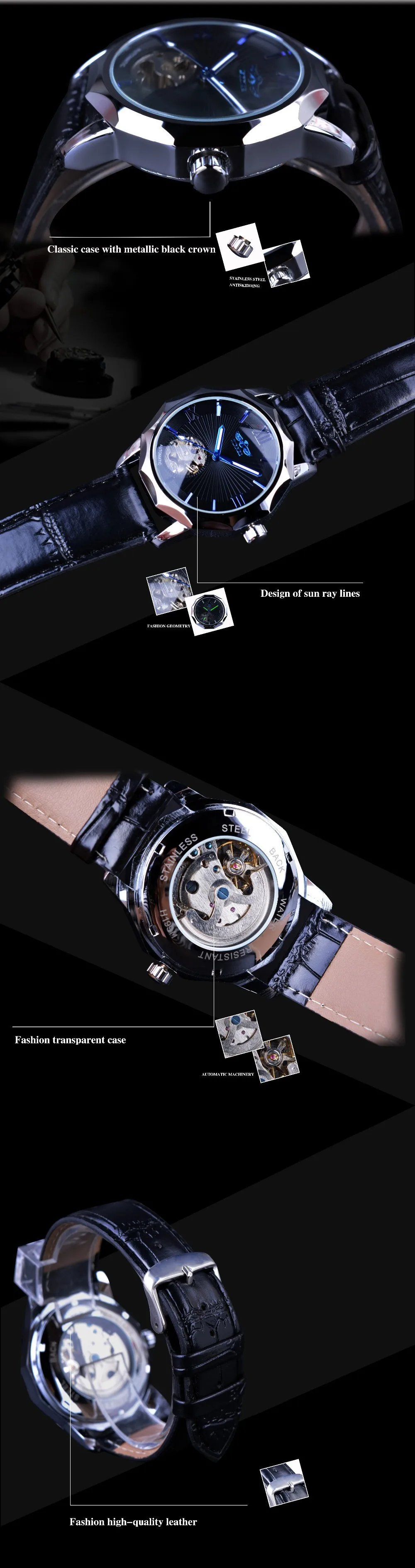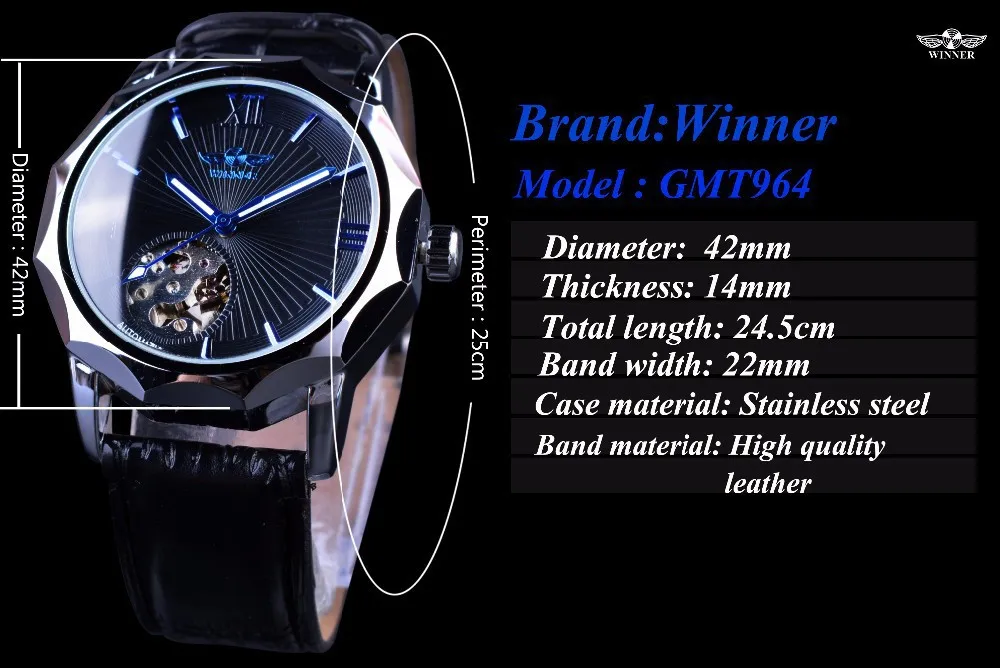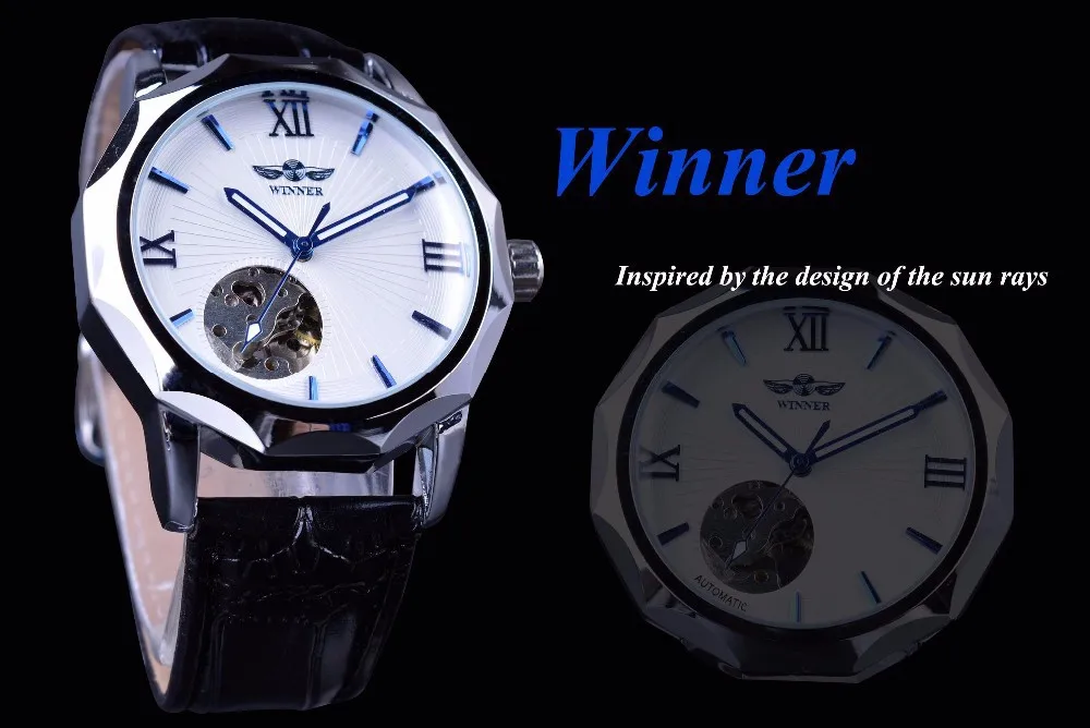 2018 Top Brand Winner Blue Ocean Geometry Design Transparent Skeleton Dial Mens Watch Luxury Automatic Fashion Mechanical Clock