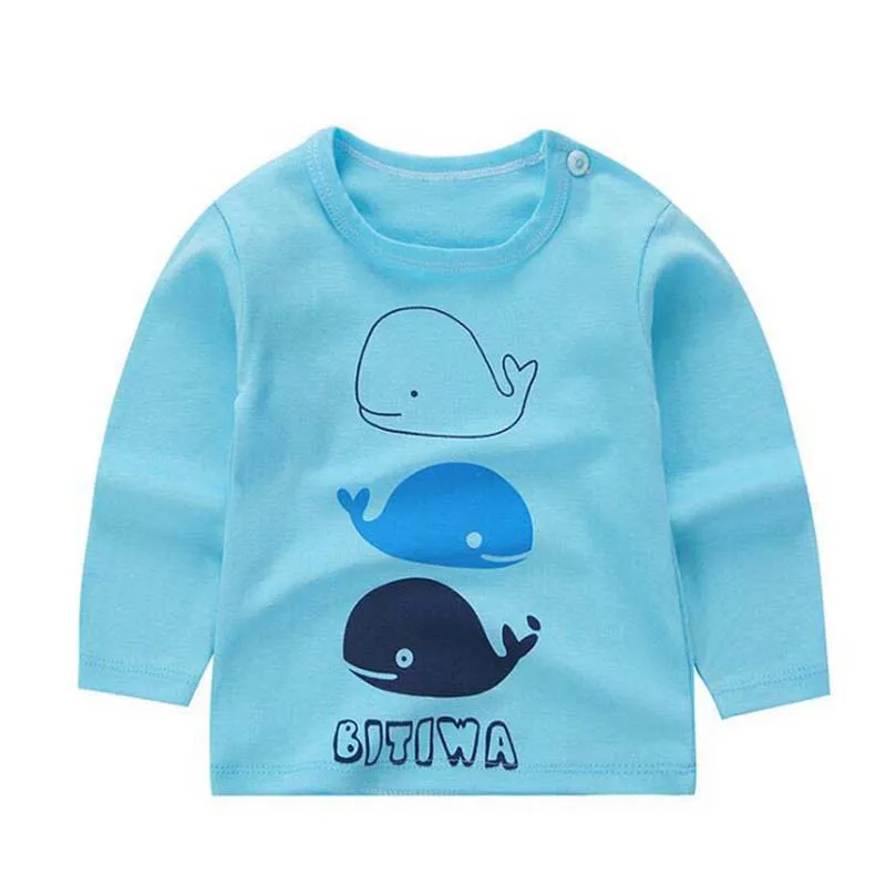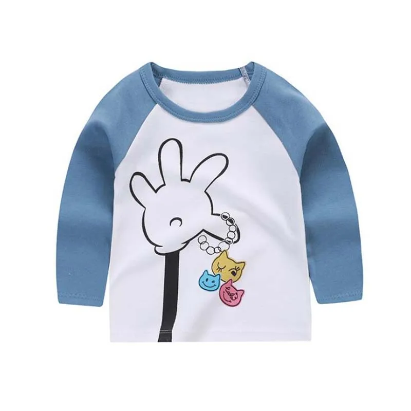2018 top children’s t-shirt cartoon animal print boys and girls long sleeve clothes tshirt cotton material for toddler kid