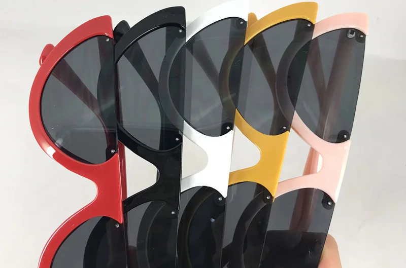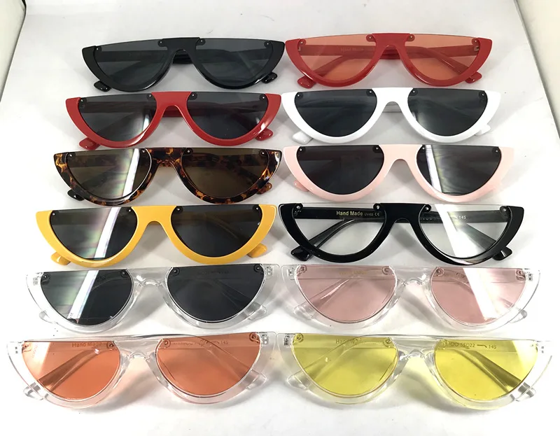 2018 Unique Half Frame Women Cat Eye Sunglasses Brand Designer Fashion Ladies Pink Tint/Clear Lens Shades