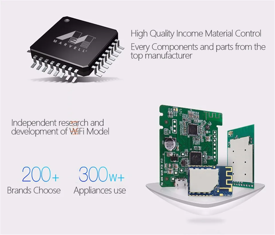 - Support all IR controlled devices such as TV, Air condition, DVD and etc.