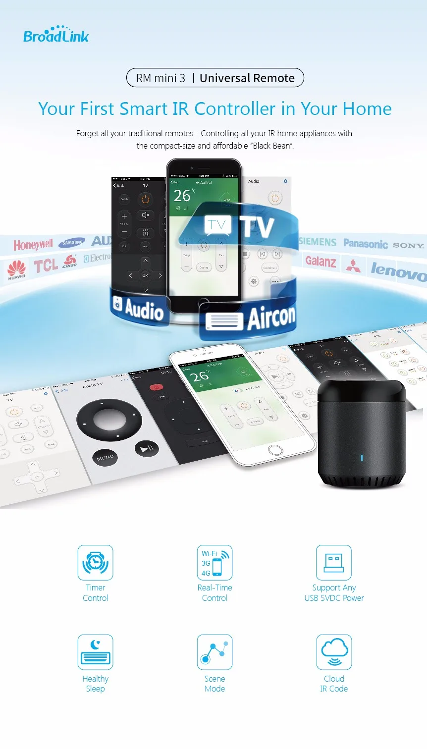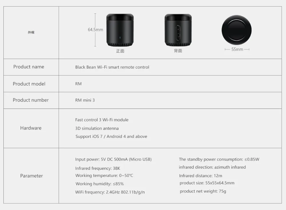 - Support all IR controlled devices such as TV, Air condition, DVD and etc.