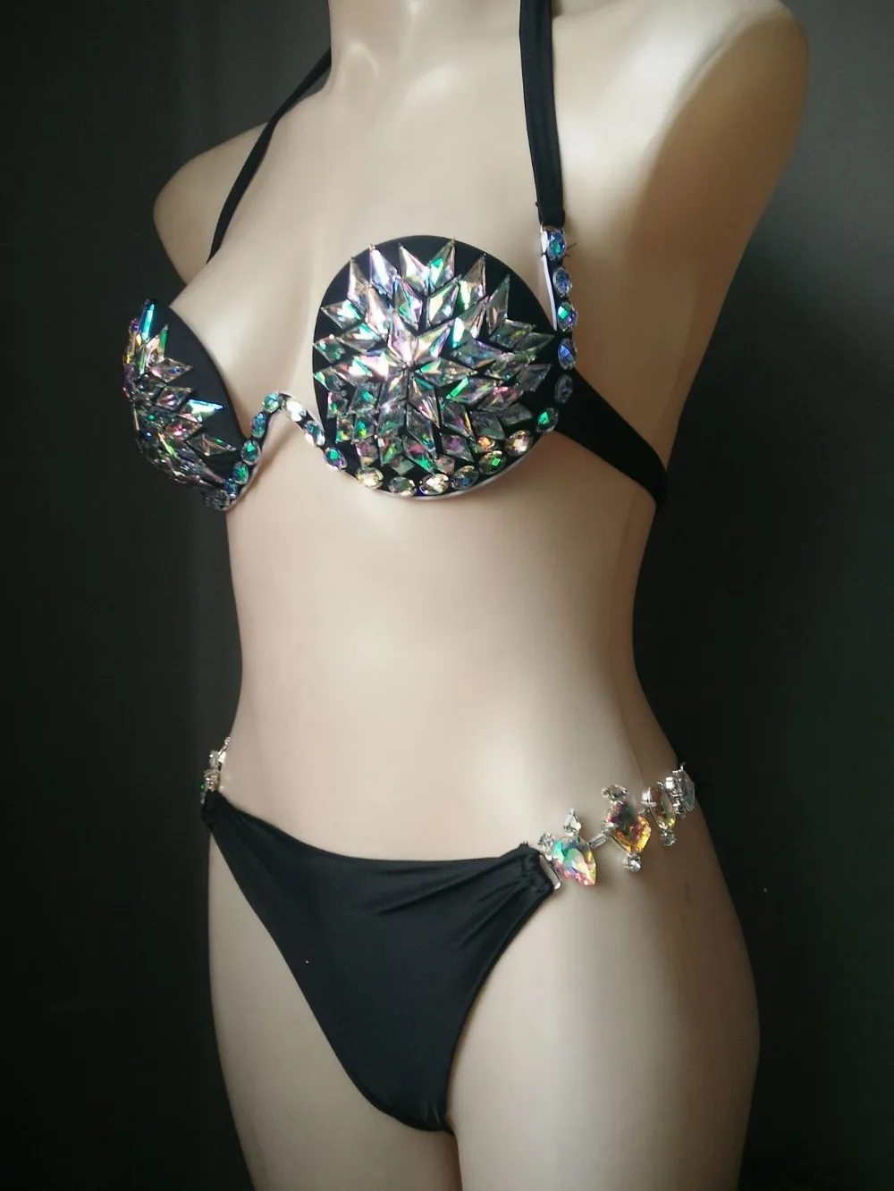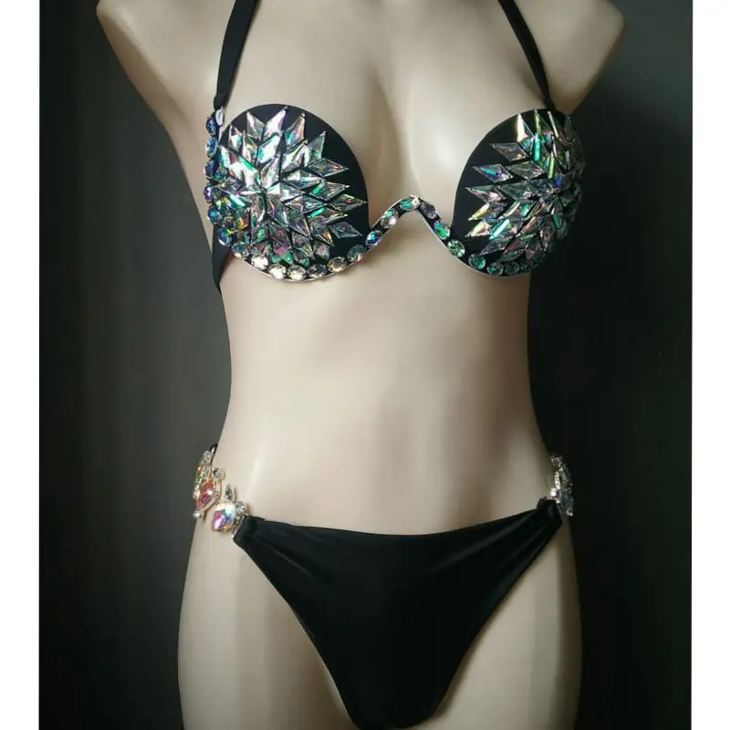 2018 venus vacation black and white diamond bikini set sexy swimwear rhinestone bathing suit beachwear women biquini swimsuit