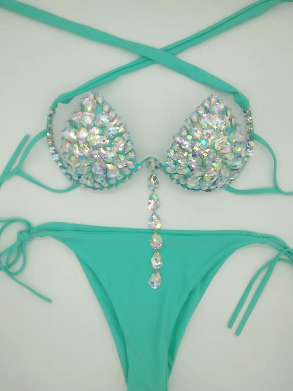 2018 venus vacation newest sexy bikini set diamond crystal women swimwear biquini push up rhinestone bathing suit beachwear