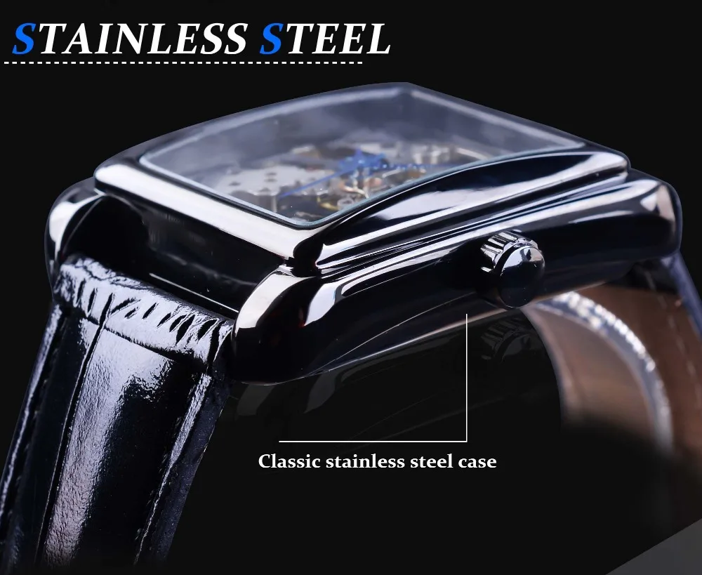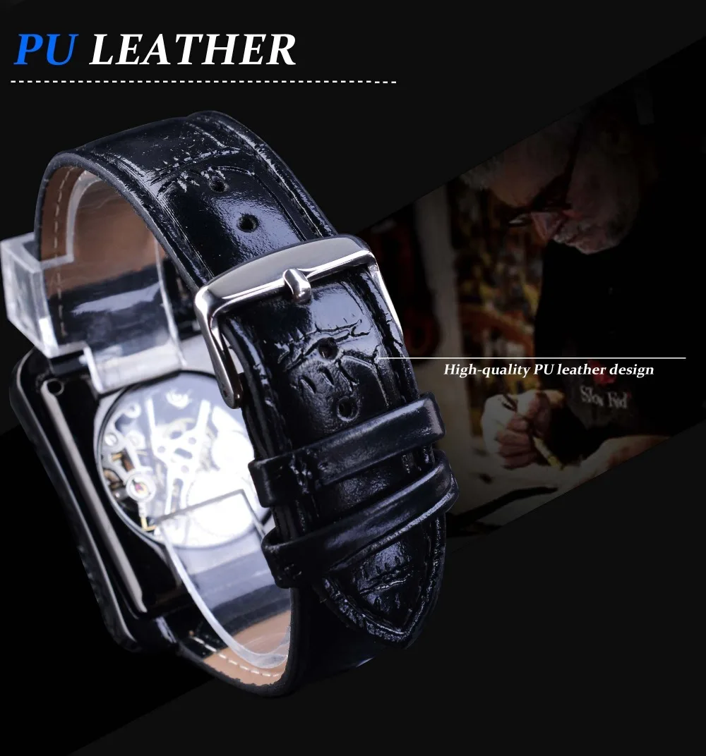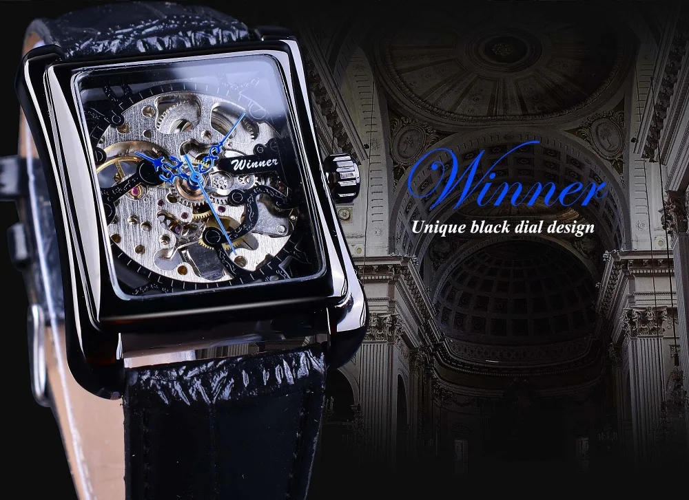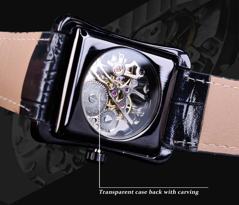 2018 Winner Brand Retro Casual Series Rectangle Dial Design Golden Pattern Hollow Skeleton Watch Men Top Luxury Mechanical Clock
