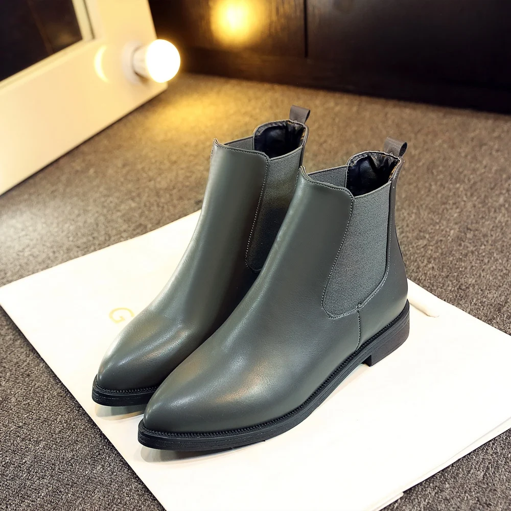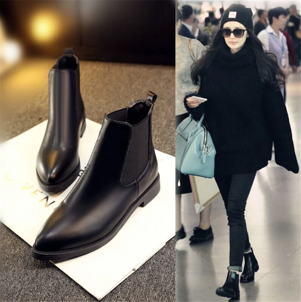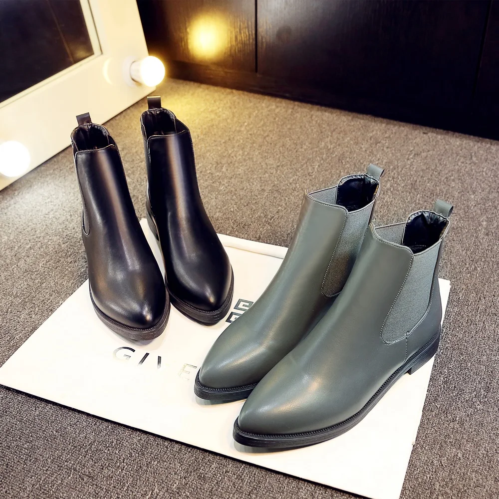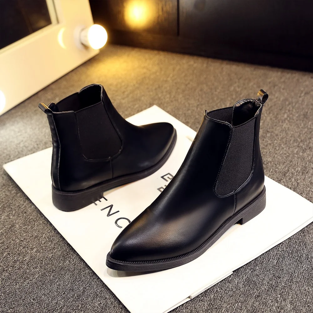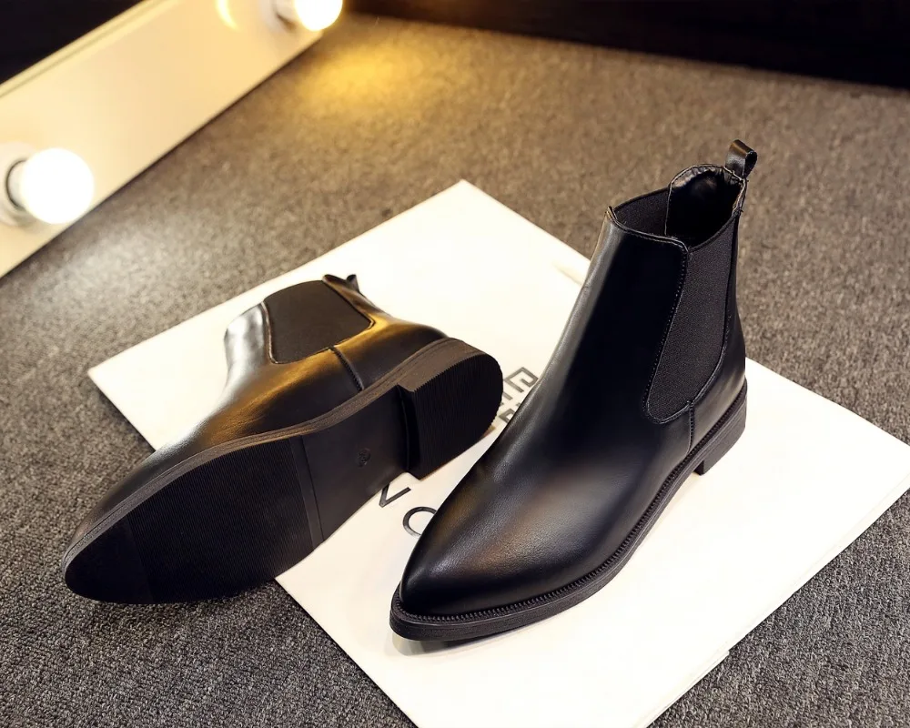 2018 Winter Boots Women Ankle Boots High Quality Pointed toe Ladies Boots Leather Fashion Boots Size 36-40