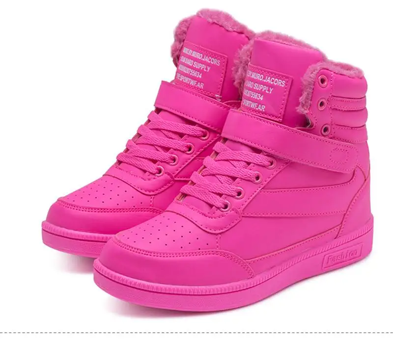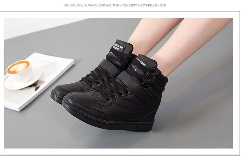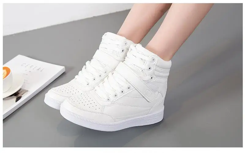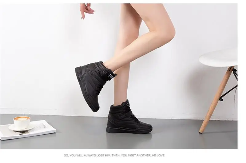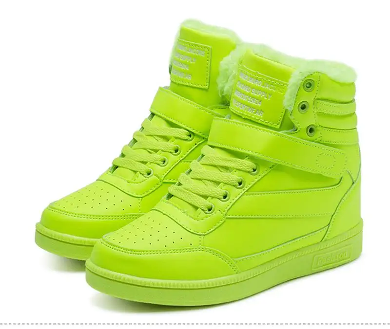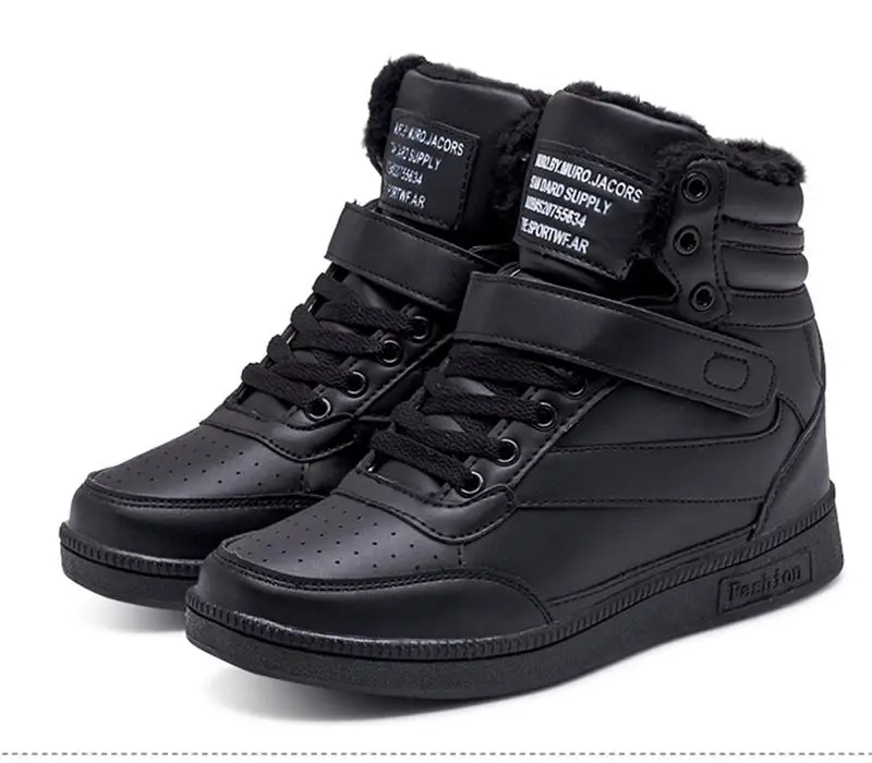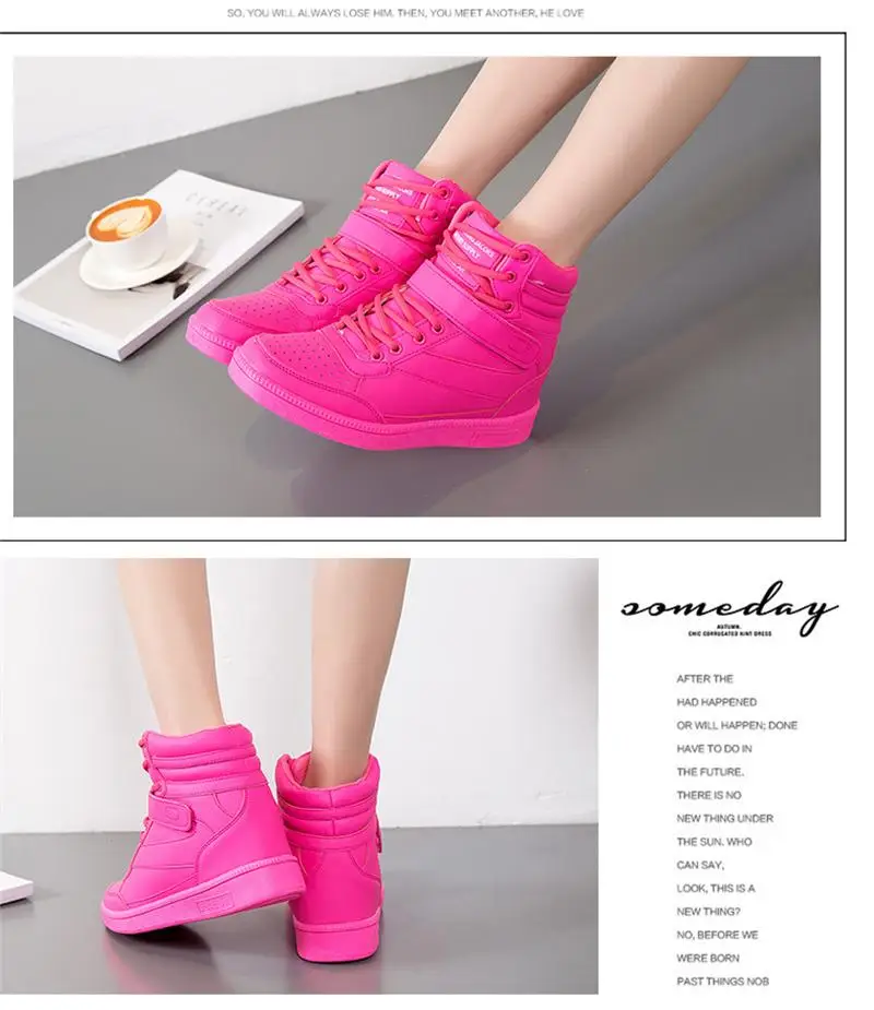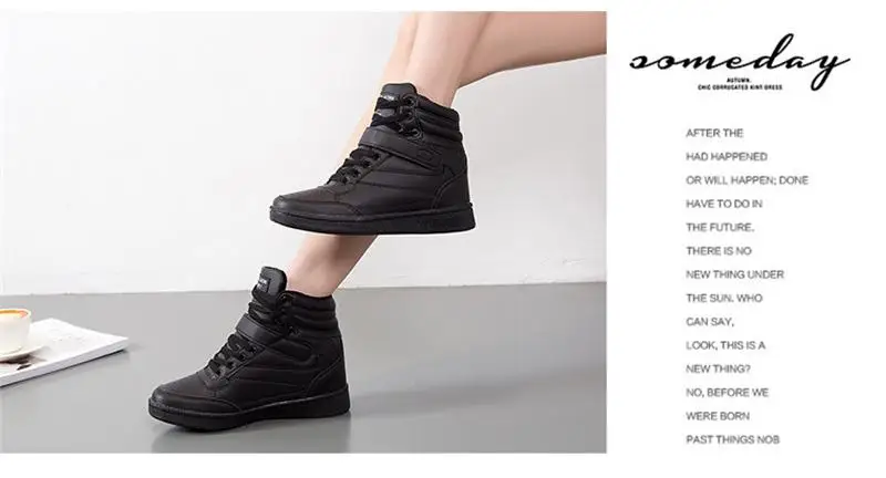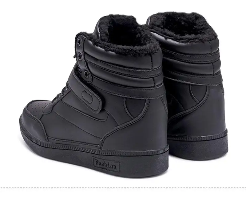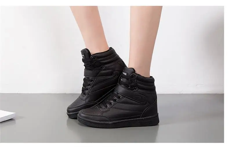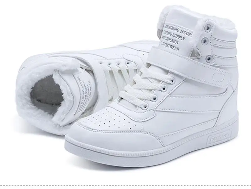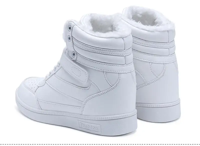 2018 Winter Fall Women Casual White Shoes Espadrilles Invisible Increasing Sneakers Leather Platform Woman Warm plush High Top