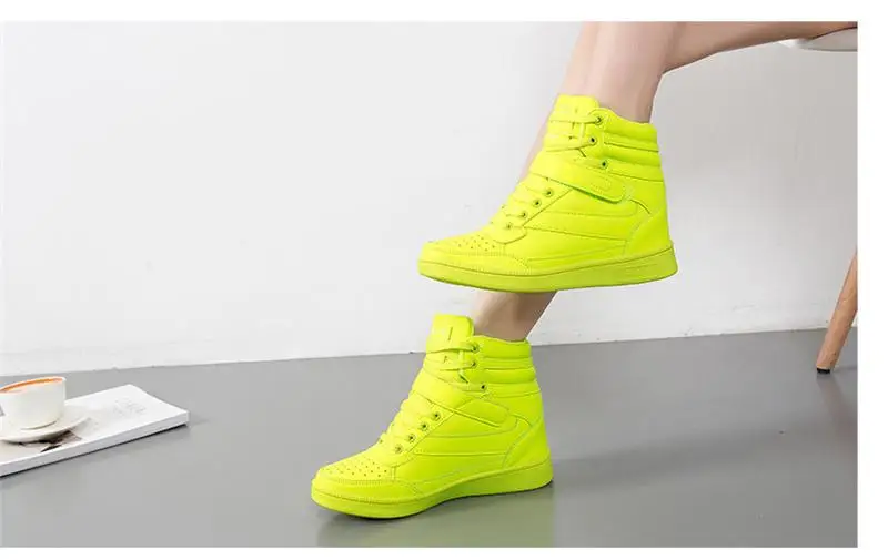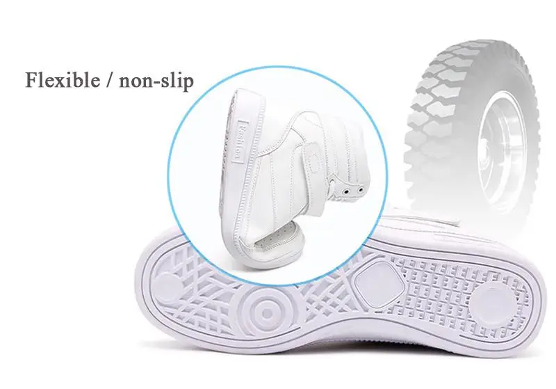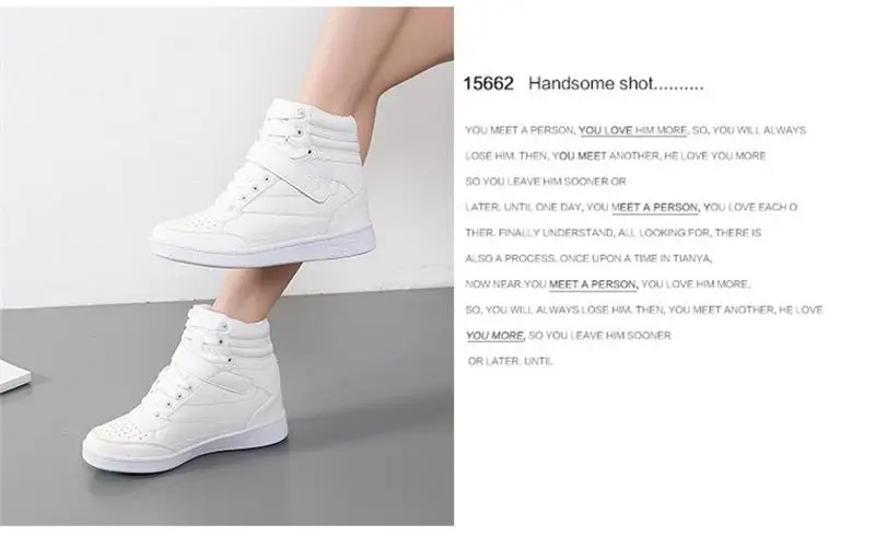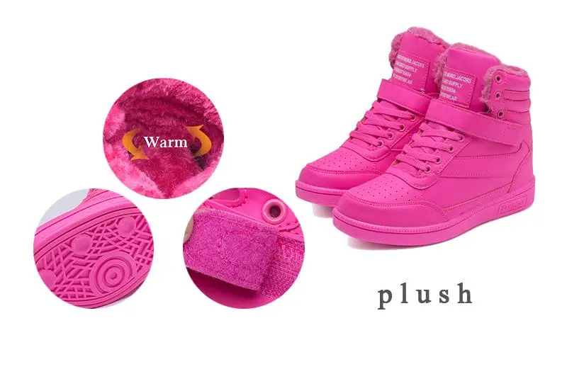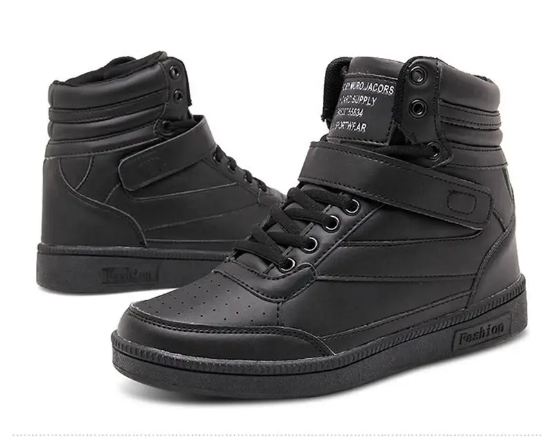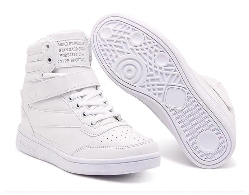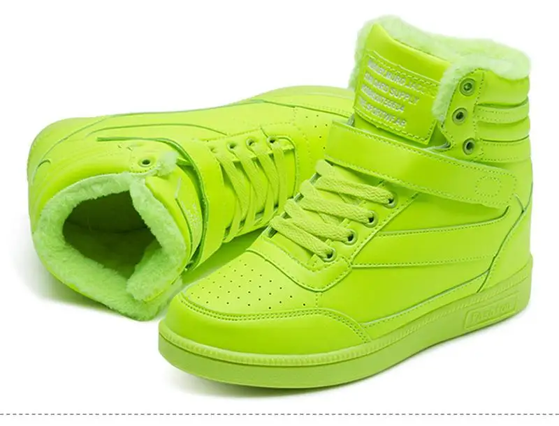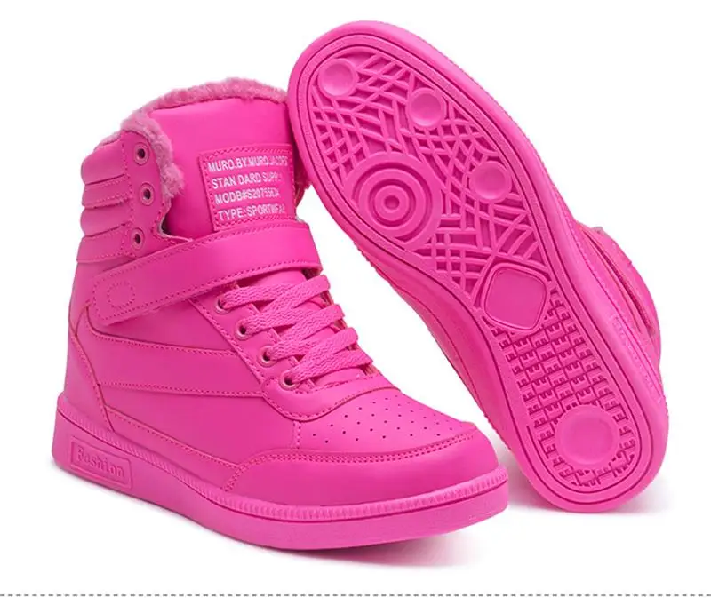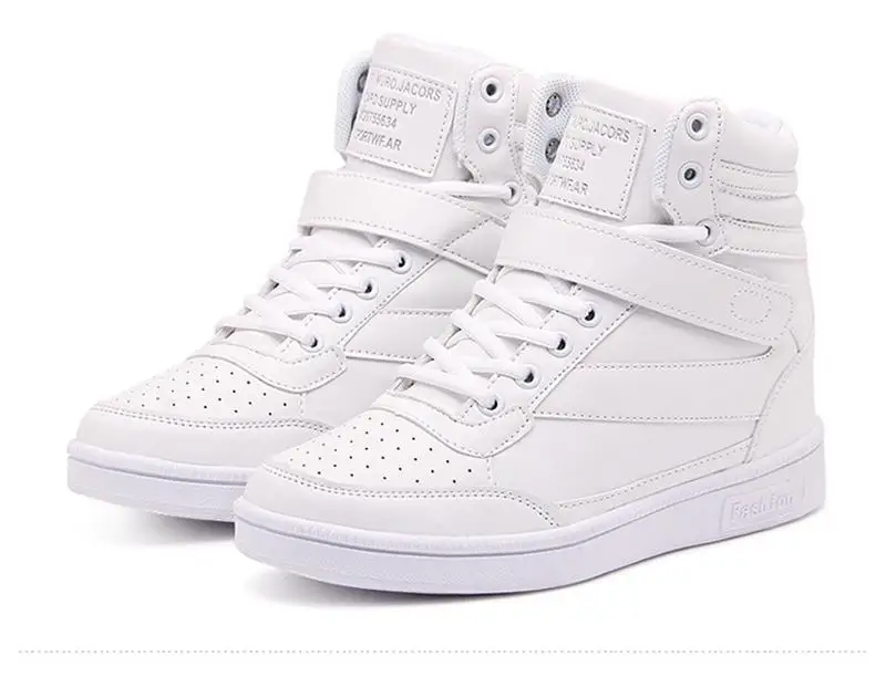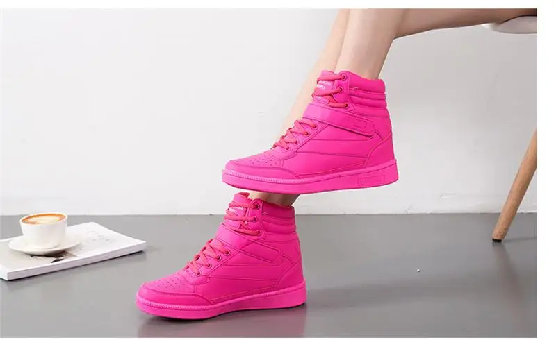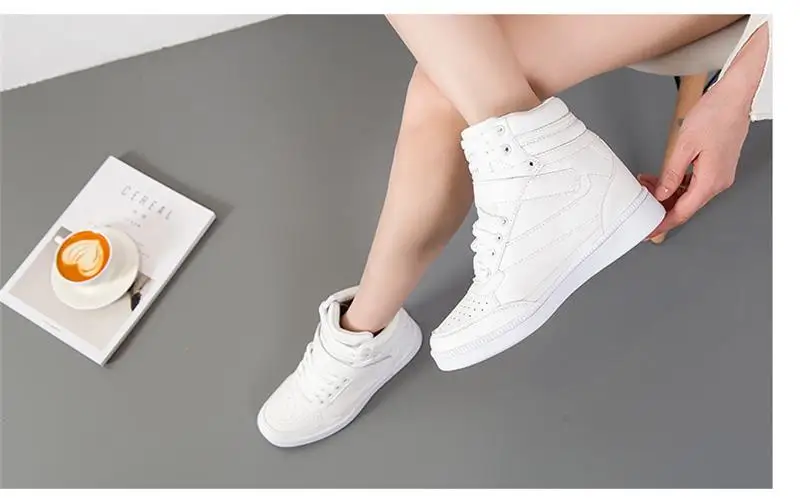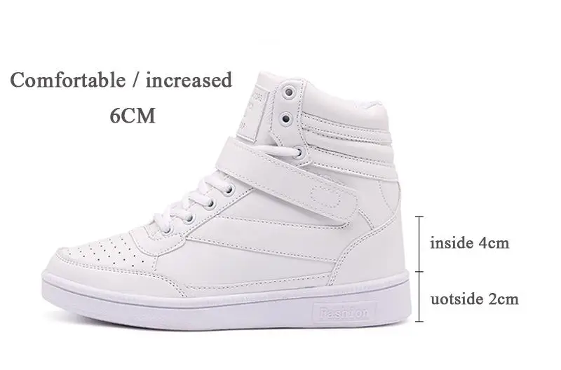 2018 Winter Fall Women Casual White Shoes Espadrilles Invisible Increasing Sneakers Leather Platform Woman Warm plush High Top