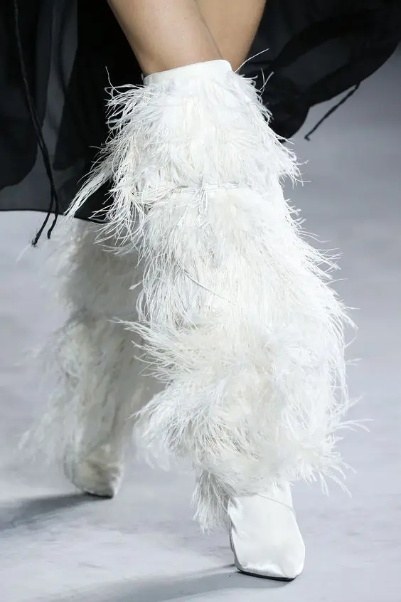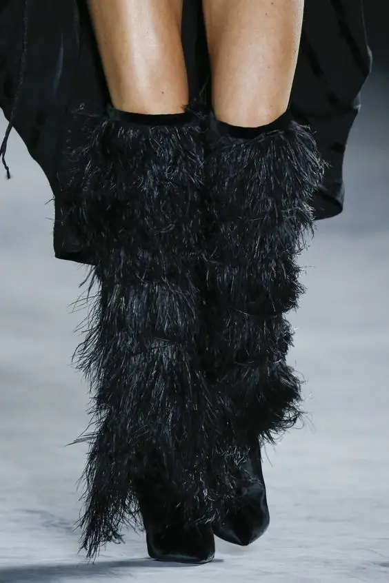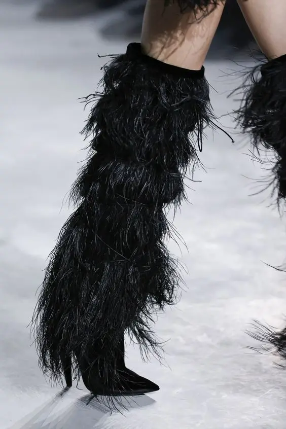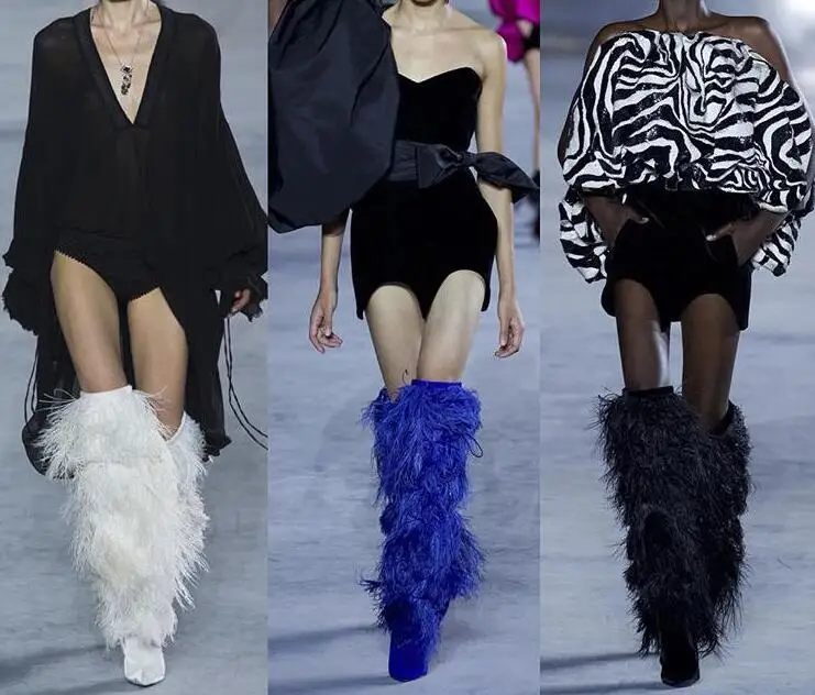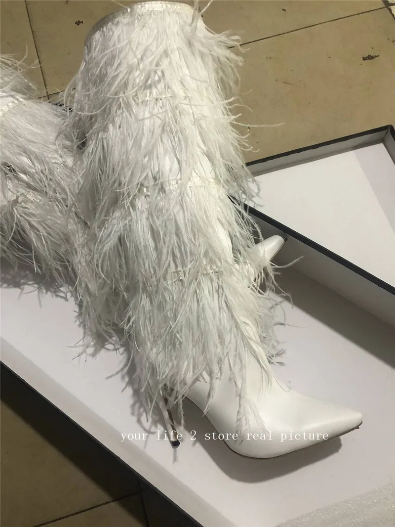 2018 Winter Full Feather Cover Women Over The Knee Boots kid Suede Leather Ladies High Heels runway crosstied long Boots women