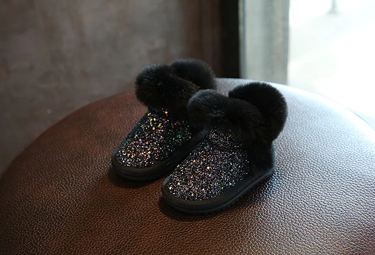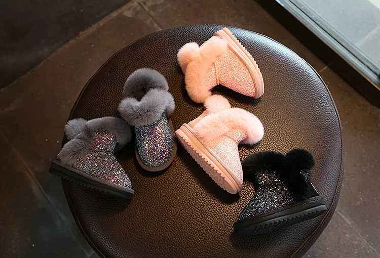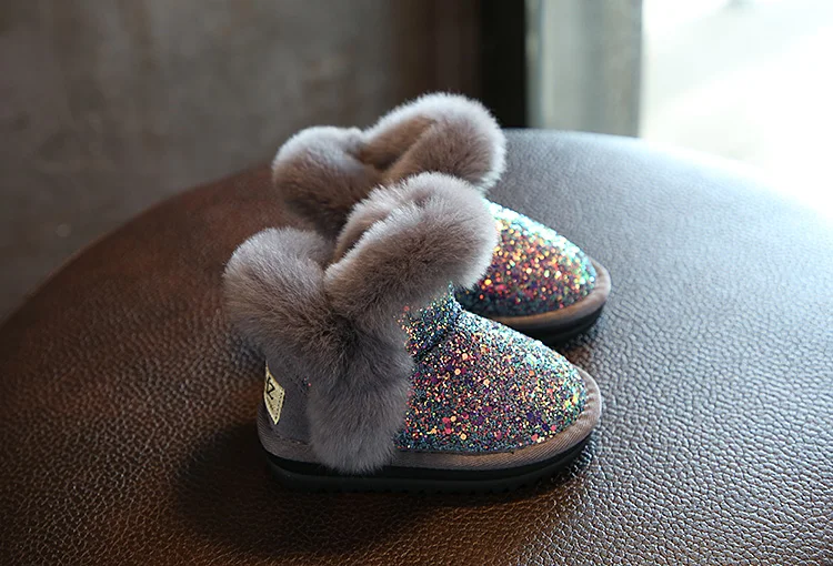 2018 winter Sequins girls boots Princess boys school snow boots thickened baby cotton shoes Non-slip foot warmer 1-9 years old