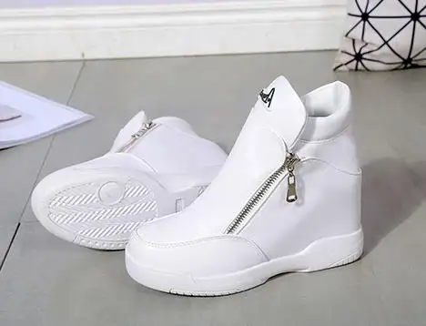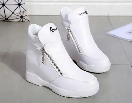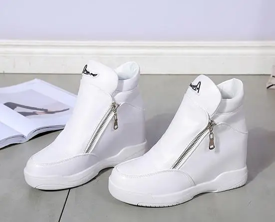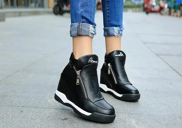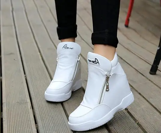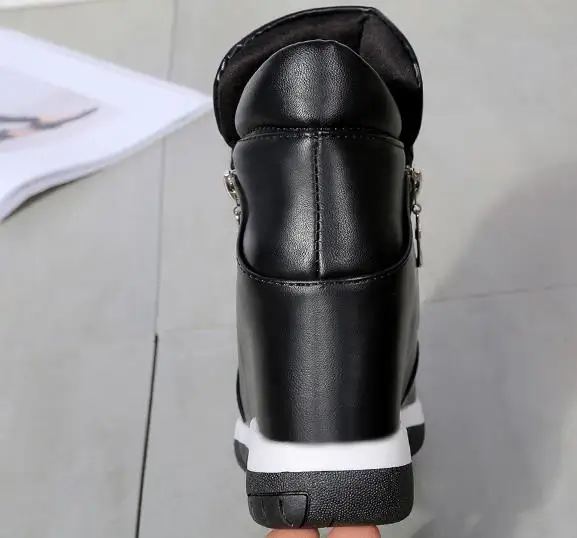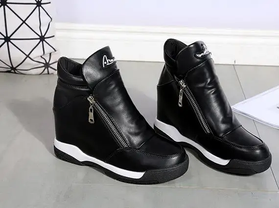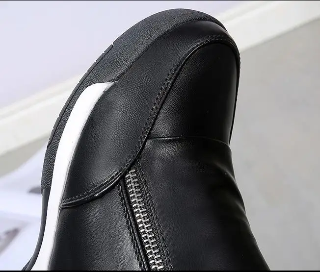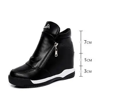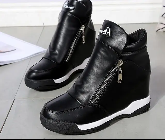 2018 Winter Women’s Leather Casual Shoes Height Increasing Ankle Boots Wedge Boots Heels Hidden Shoes Woman Platform Zip Shoes
