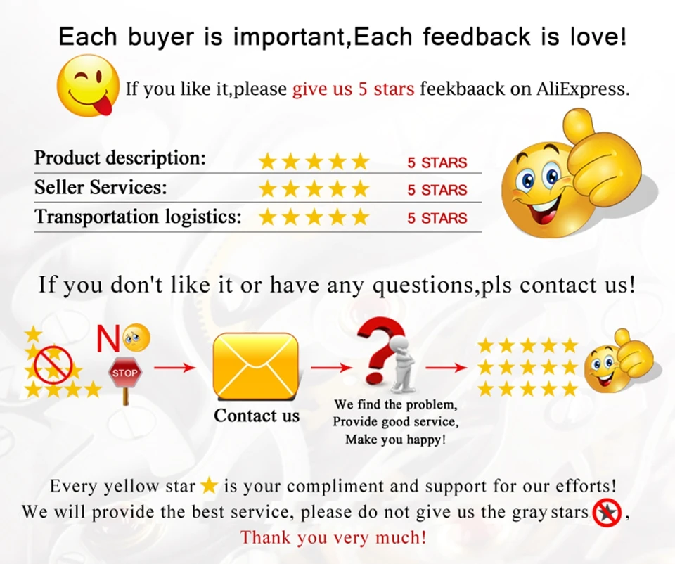 1. Your feedback is really important to us. Please take a few seconds to leave a great feedback if you are satisfied with our product and service, thank you!