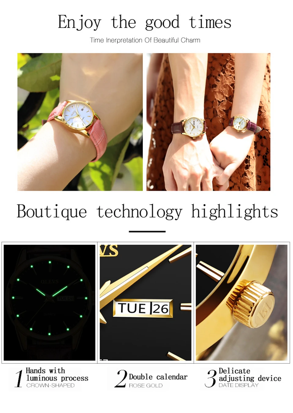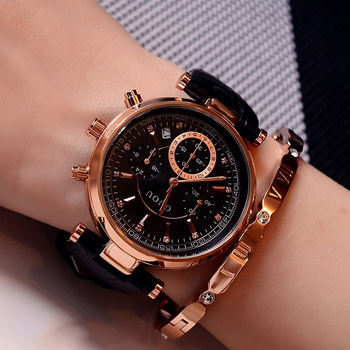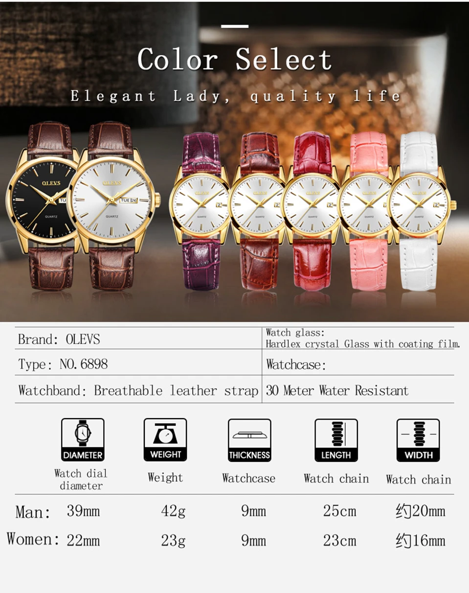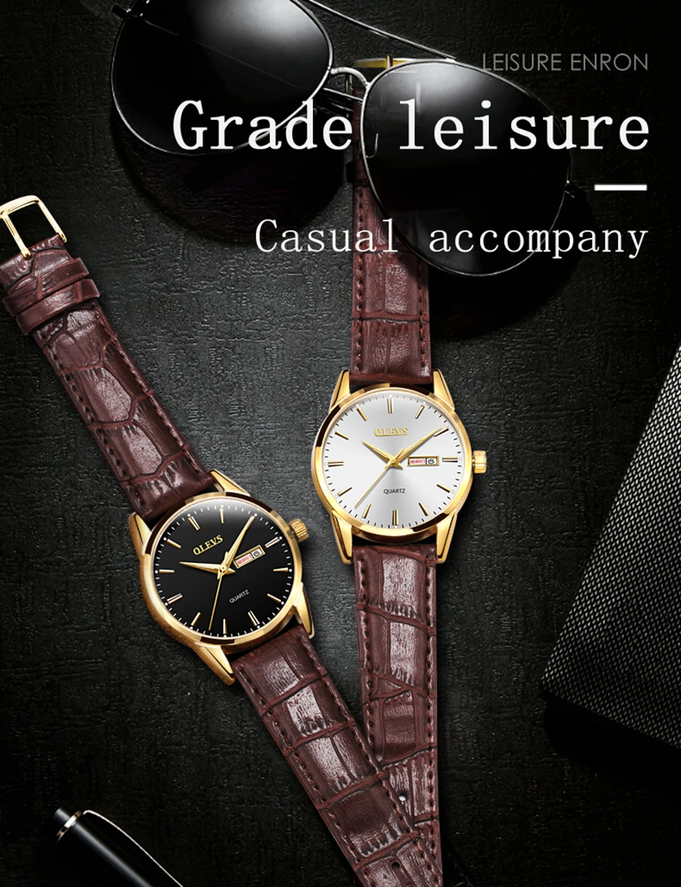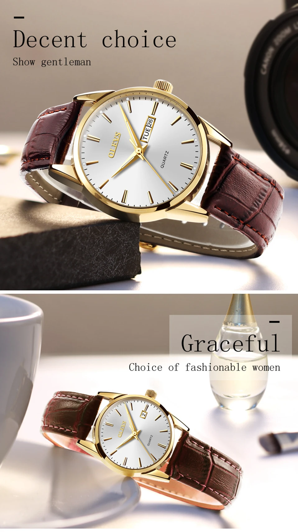 Men’s & Women’s Couple Watch top brand luxury Genuine Leather Waterproof Business watch Luminous Hands waterproof Clock