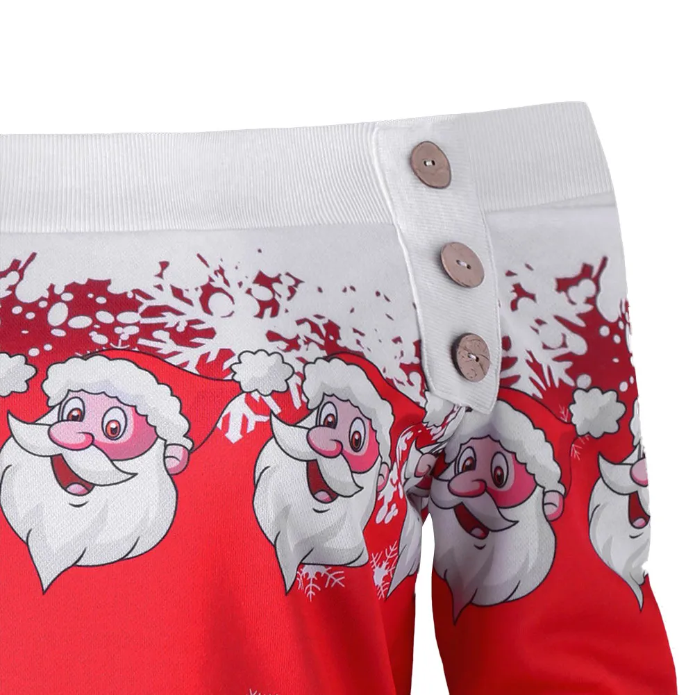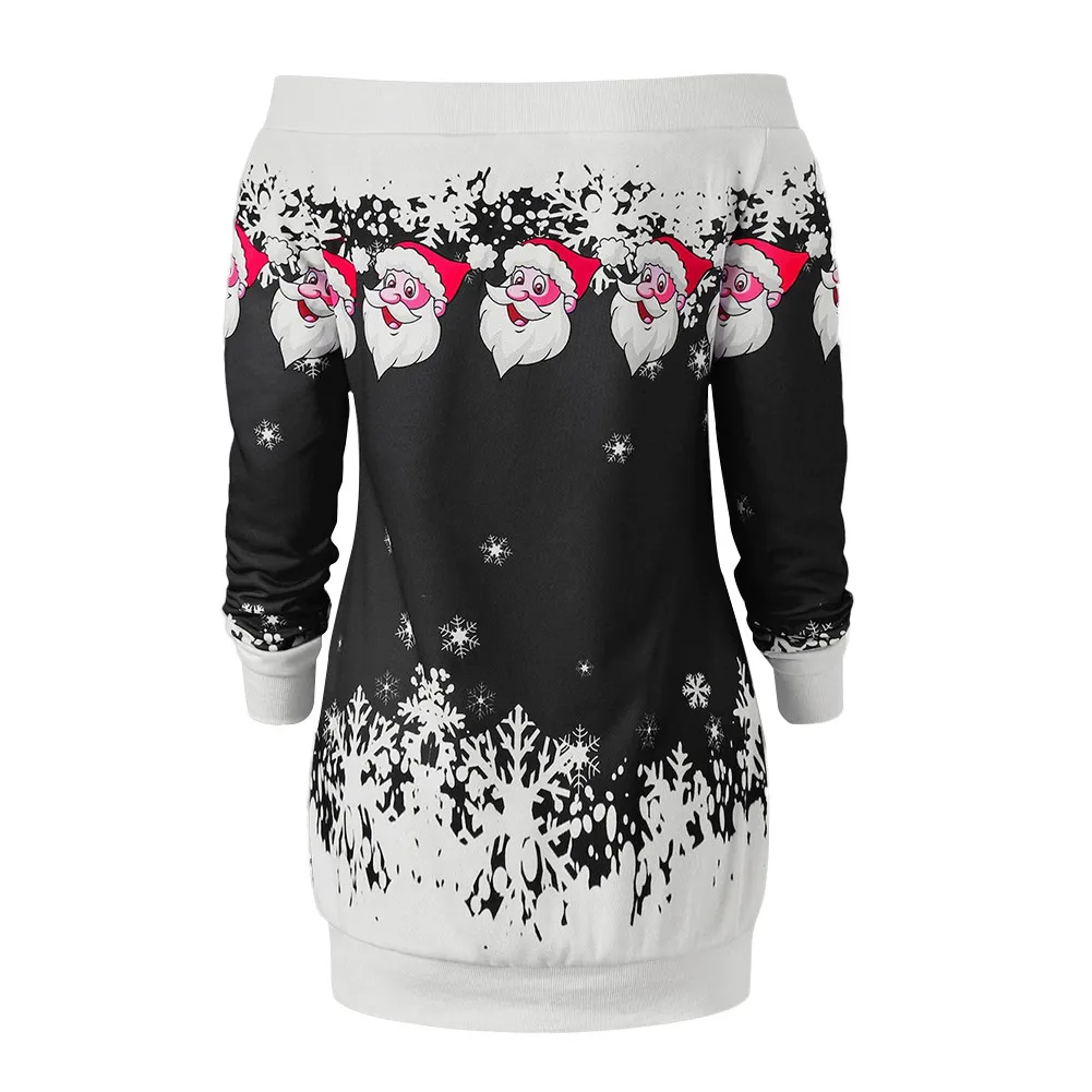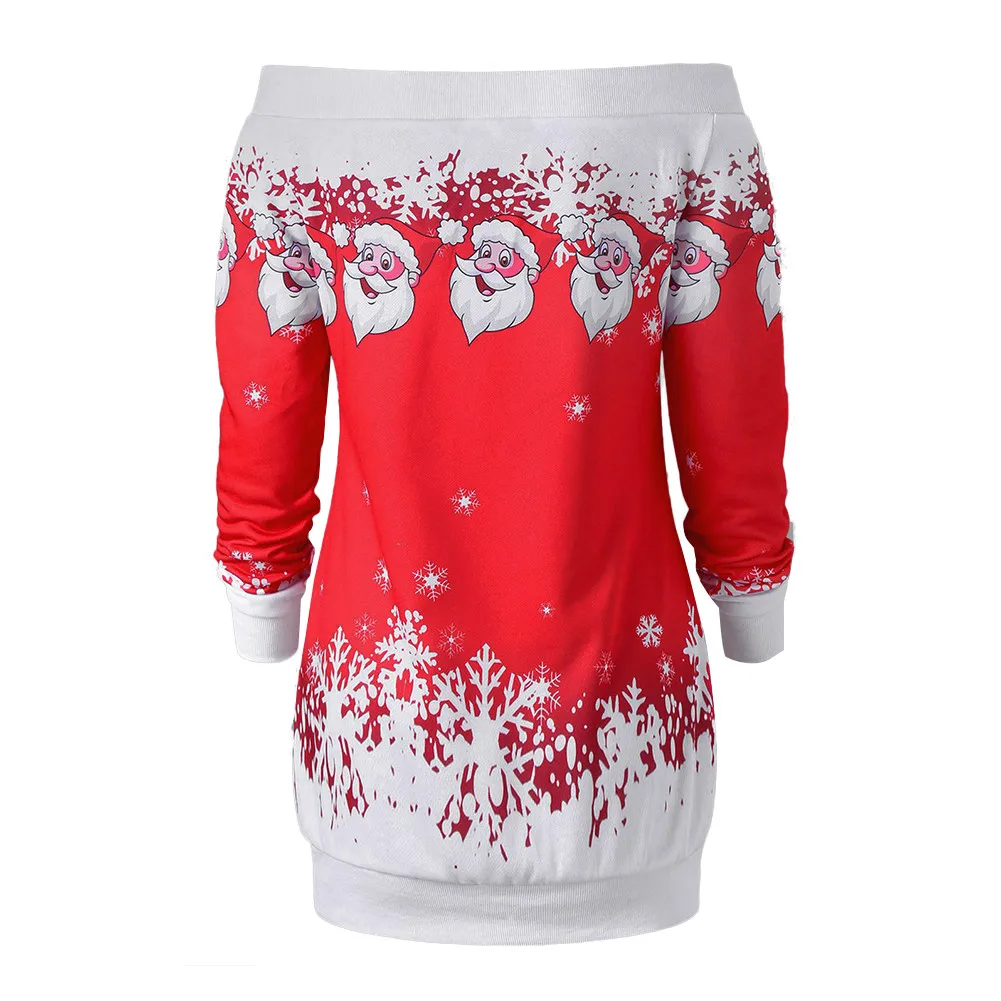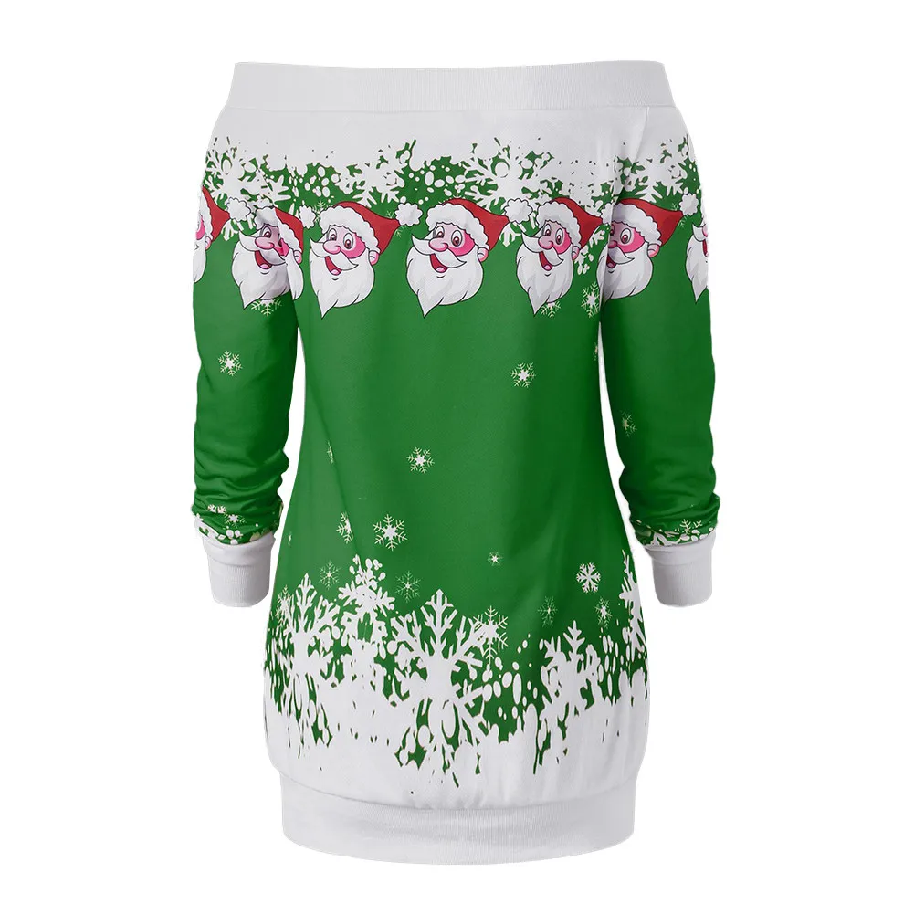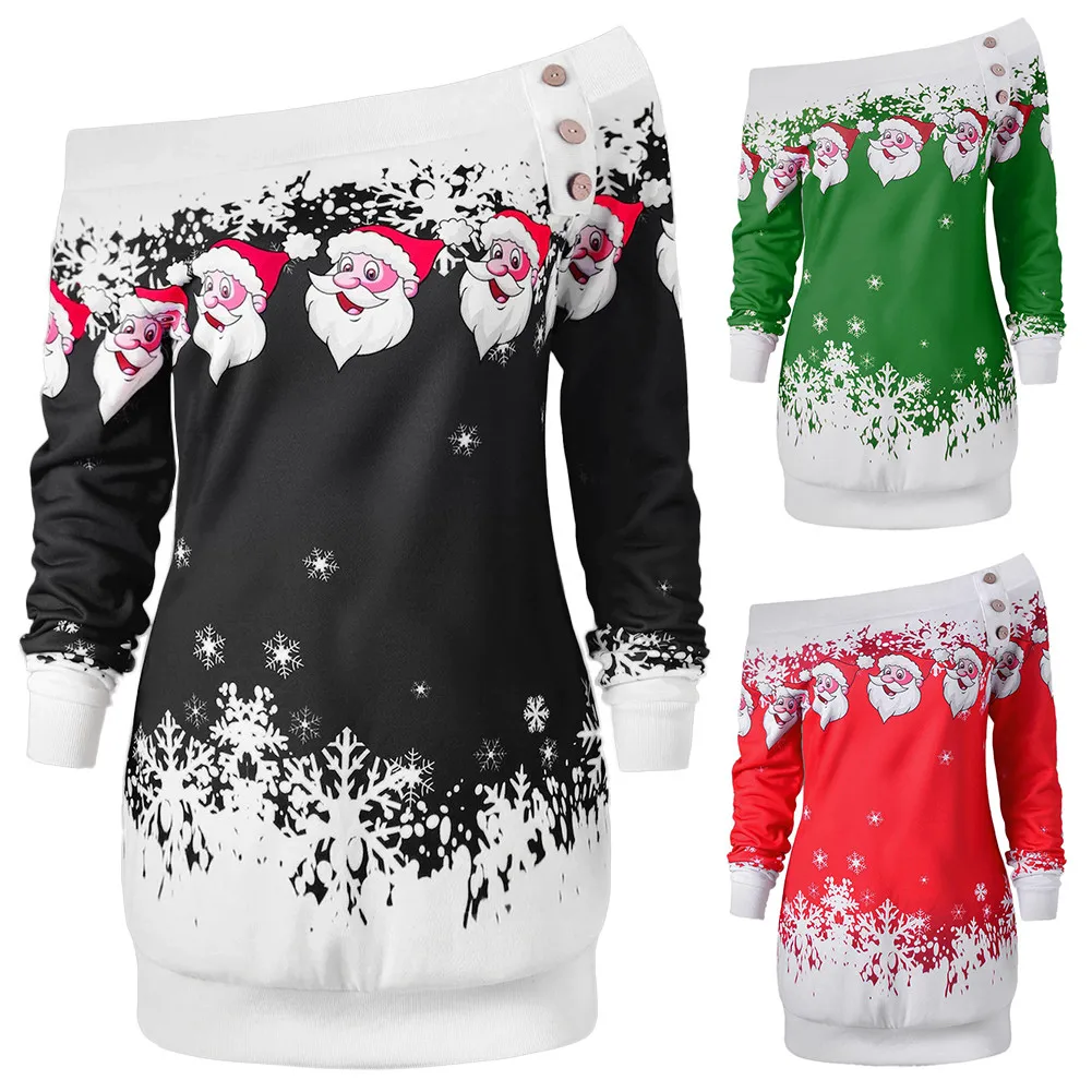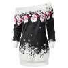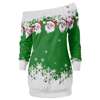 2018 Women Christmas Dress Long Sleeve One Shoulder Santa Printed Red Green Black Color Dresses Loose Casual Party Dress