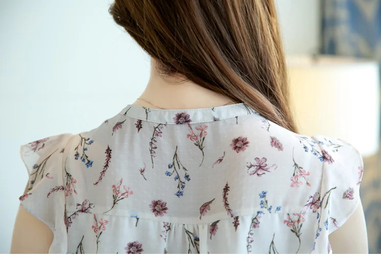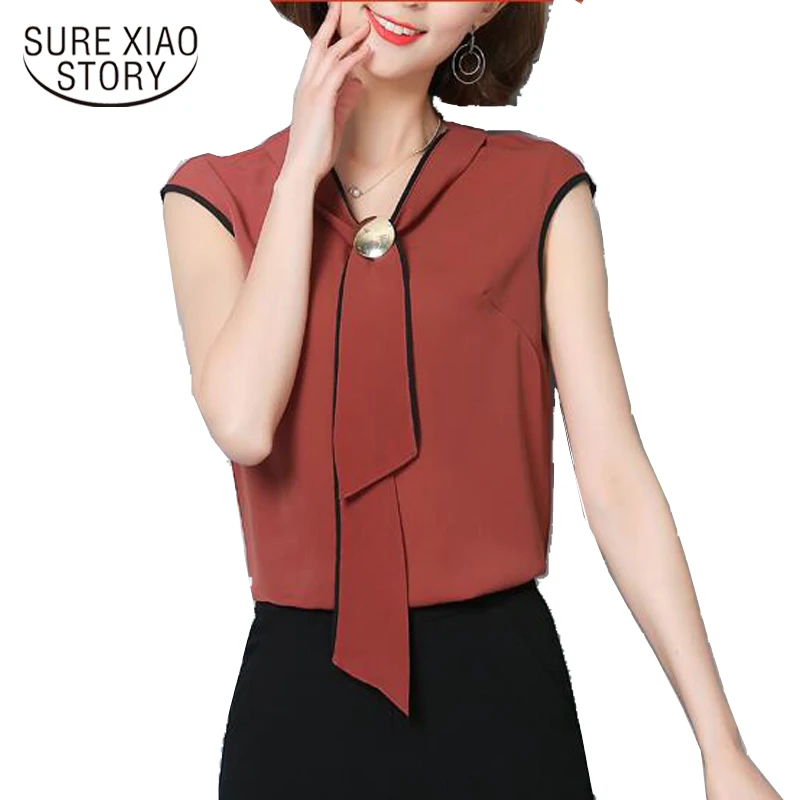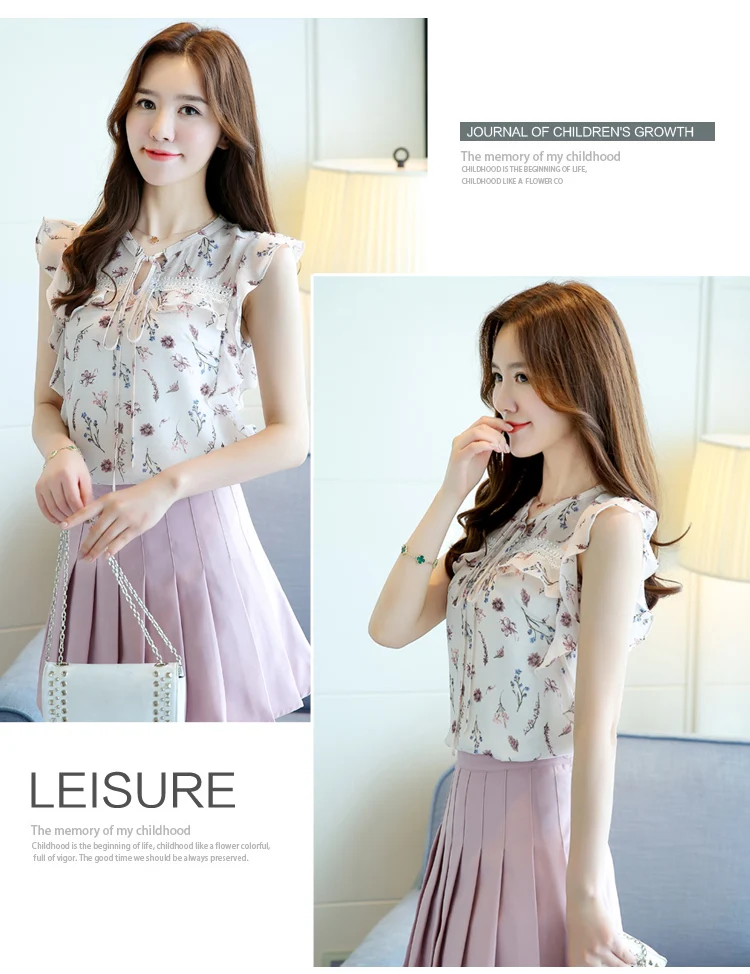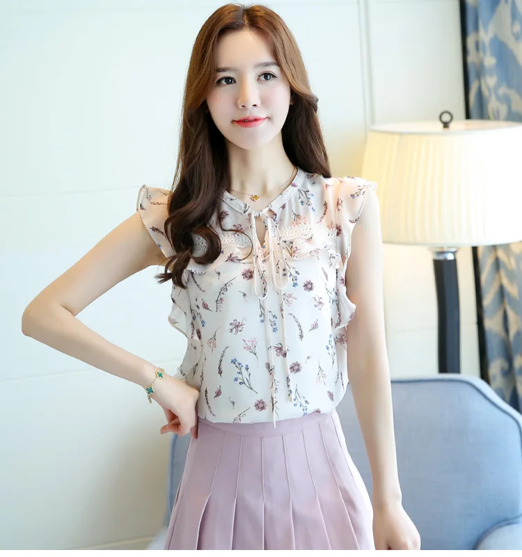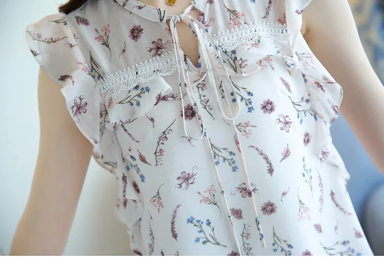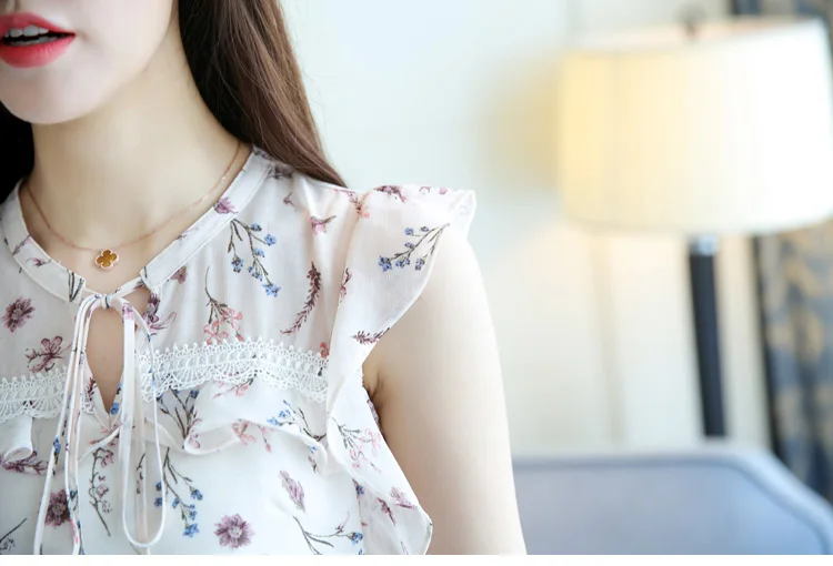 2018 women clothing new summer chiffon sleeveless women blouses casual sweet lady fashion bow white print blouses 0111 30
