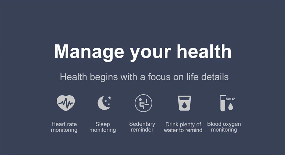 Heart rate monitor,blood pressure and blood oxygen monitor,sleep monitor. Environmental comfort TPE band Palming bright screen