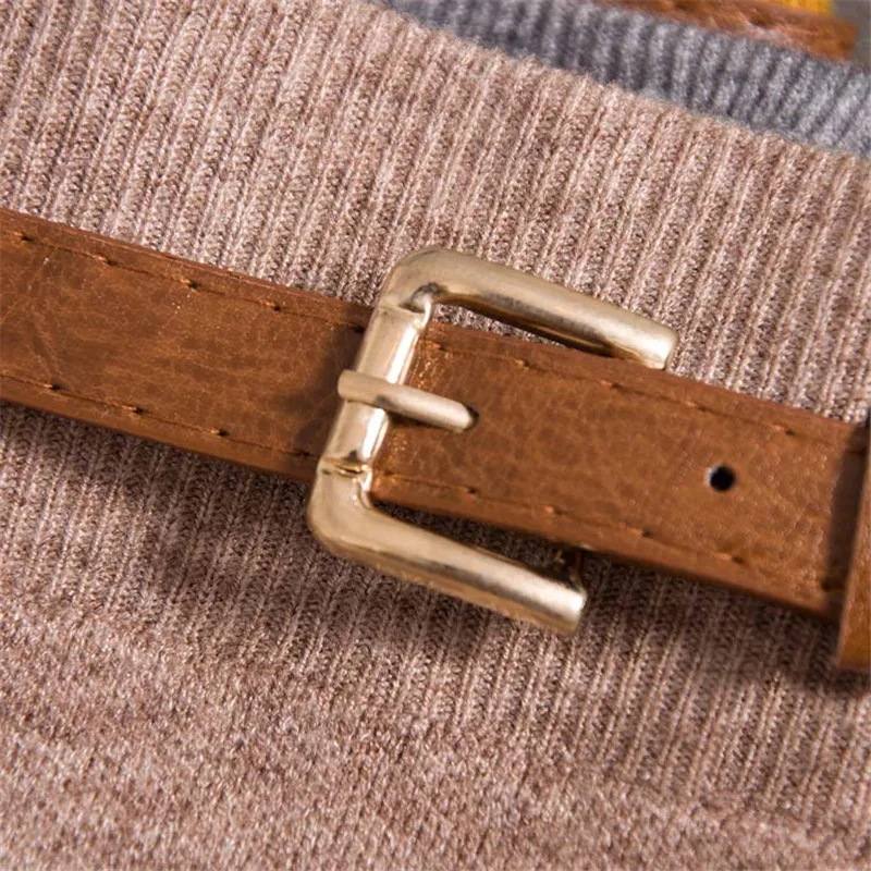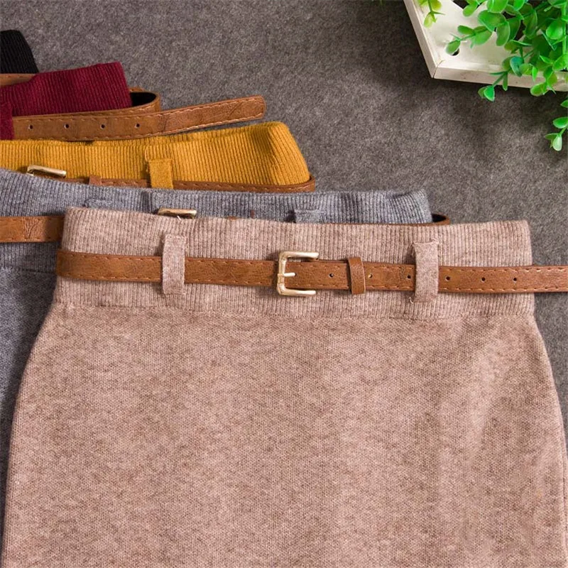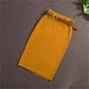 2018 Women Midi Skirts Knitting Solid Female Pencil Skirt Autumn Winter High Waist with Sashes Bodycon Package Hip Split SK6008