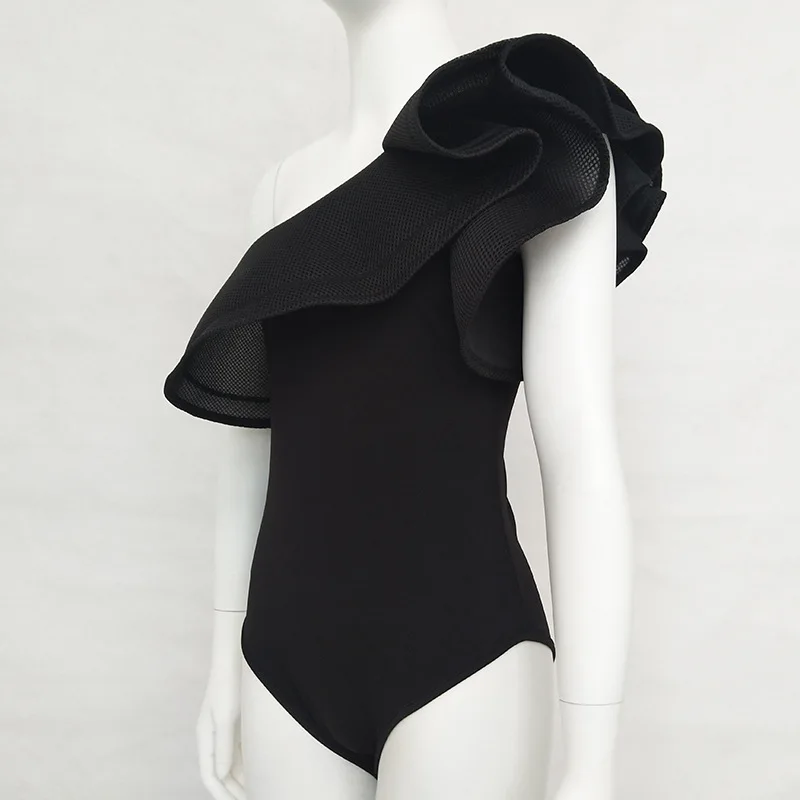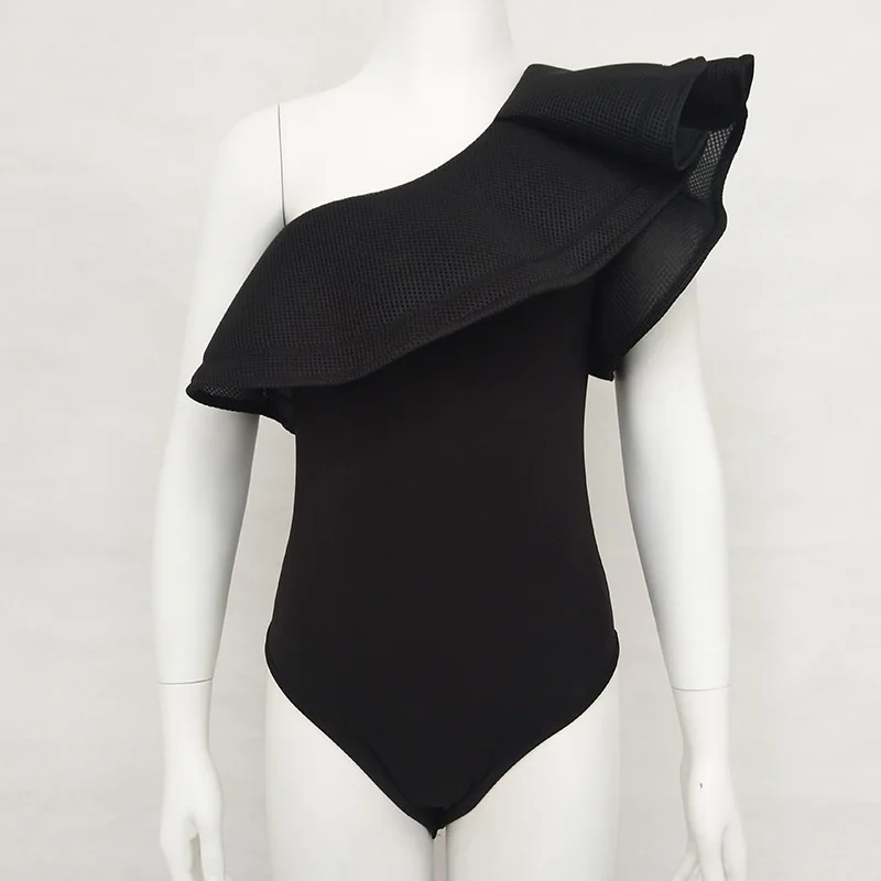 2018 Women sexy see through ruffled bodycon bodysuit rompers summer casaul beach boho jumpsuit overalls black red E1445