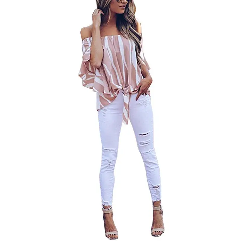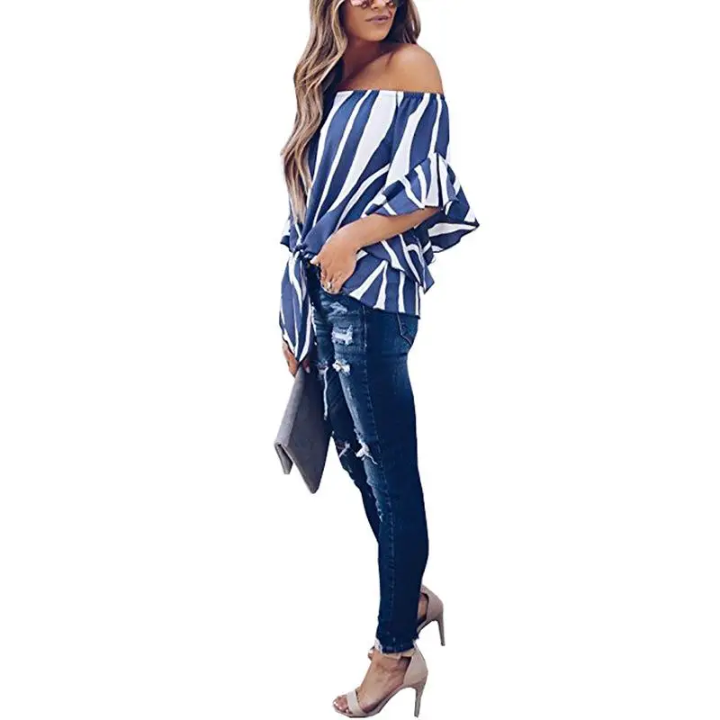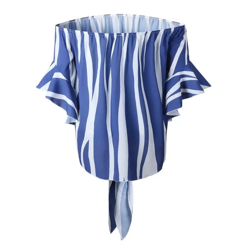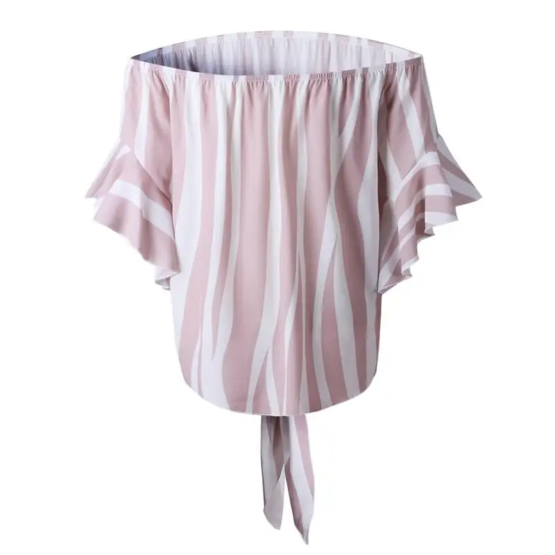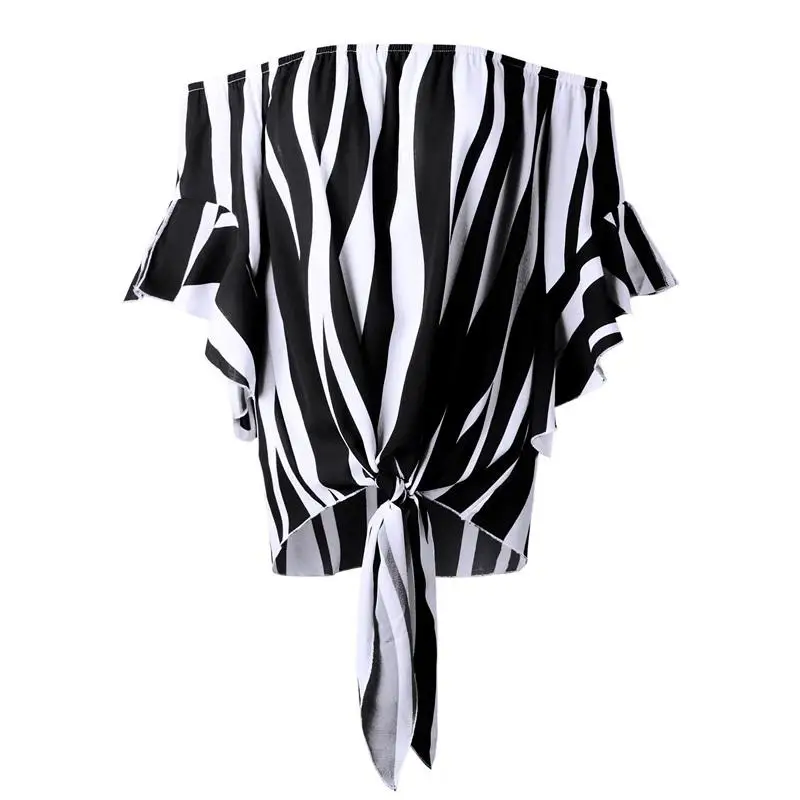 2018 women summer blouse Cross border sexy zebra print printed slash neck striped horn sleeve female chiffon shirt sexy tops