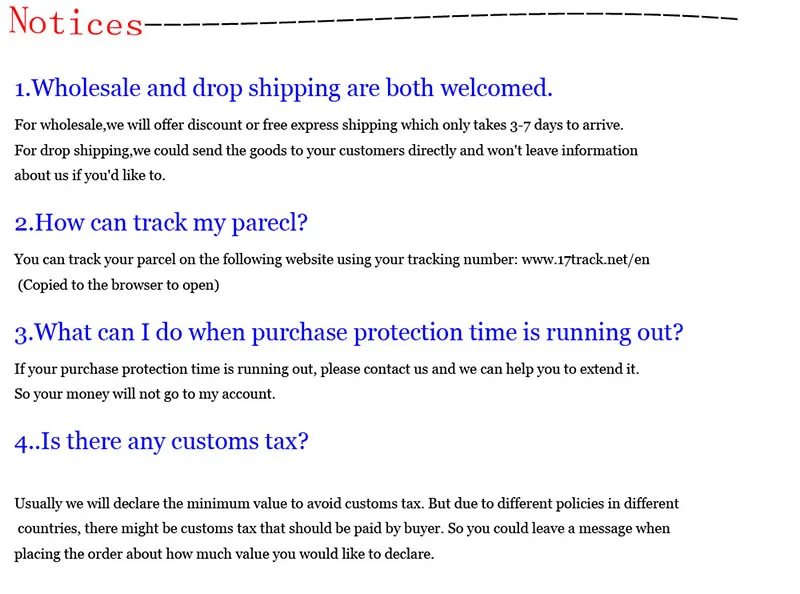 • If you did not receive the product within the guaranteed time( 45 days not including 2-5 day processing) you can request a refund or a reshipment.