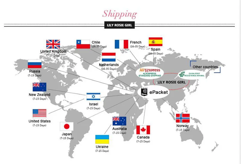 Packages from our warehouse in China will be shipped by ePacket or EMS depending on the weight and size of the product. Packages shipped from our US warehouse are shipped through USPS.