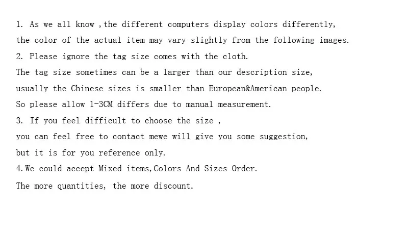 3.The size is Asian size, different with Russia, European and US size. If you couldn‘t confirm the size, please contact with us, we’ll advise the size fit for you.