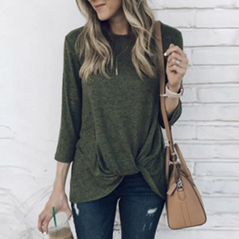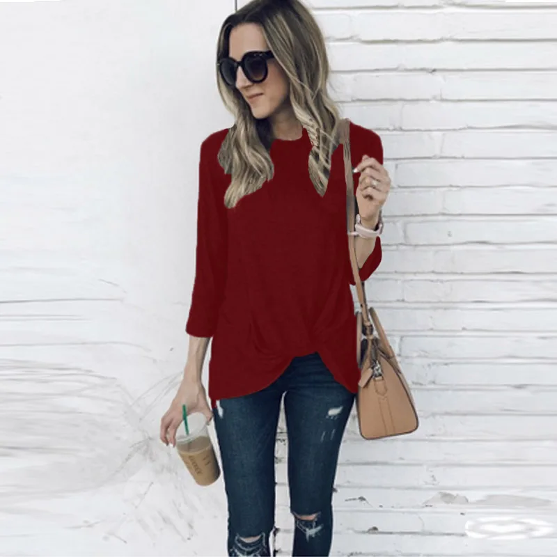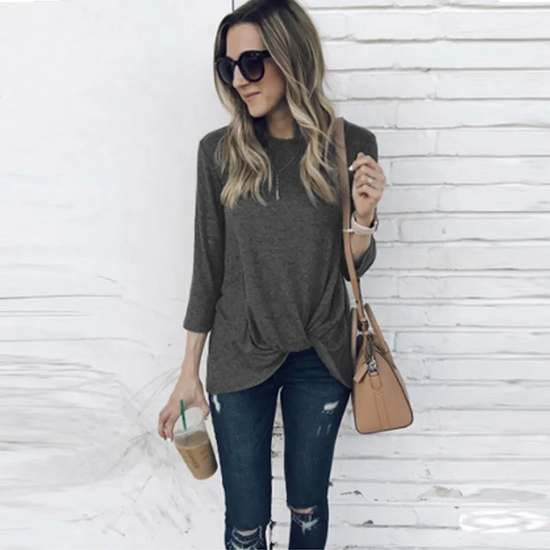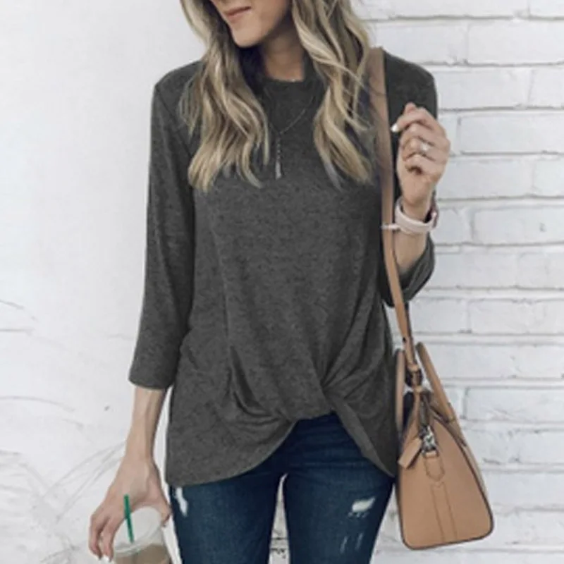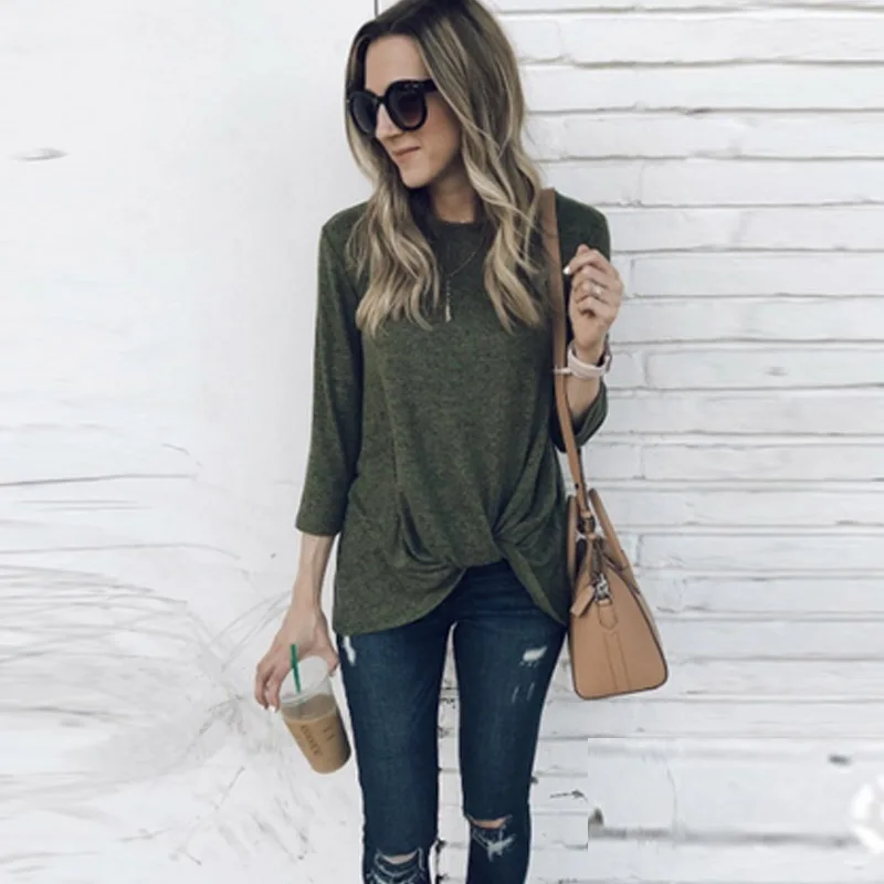 2018 ZANZEA Spring Women’s Casual Crew Neck 3/4 Sleeve Loose Pleated Blouse Ladies Fashion Baggy Work OL Shirts Knitted Pullover