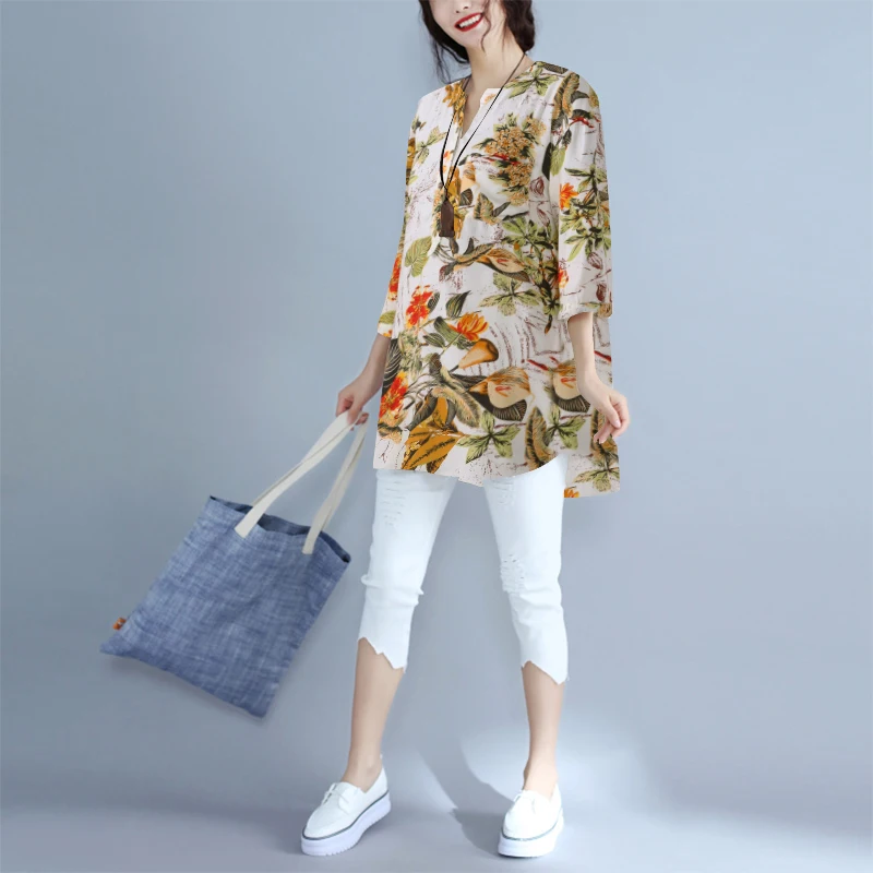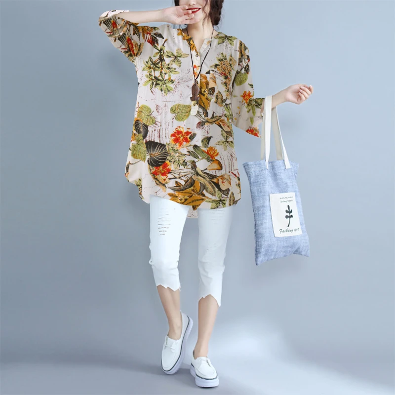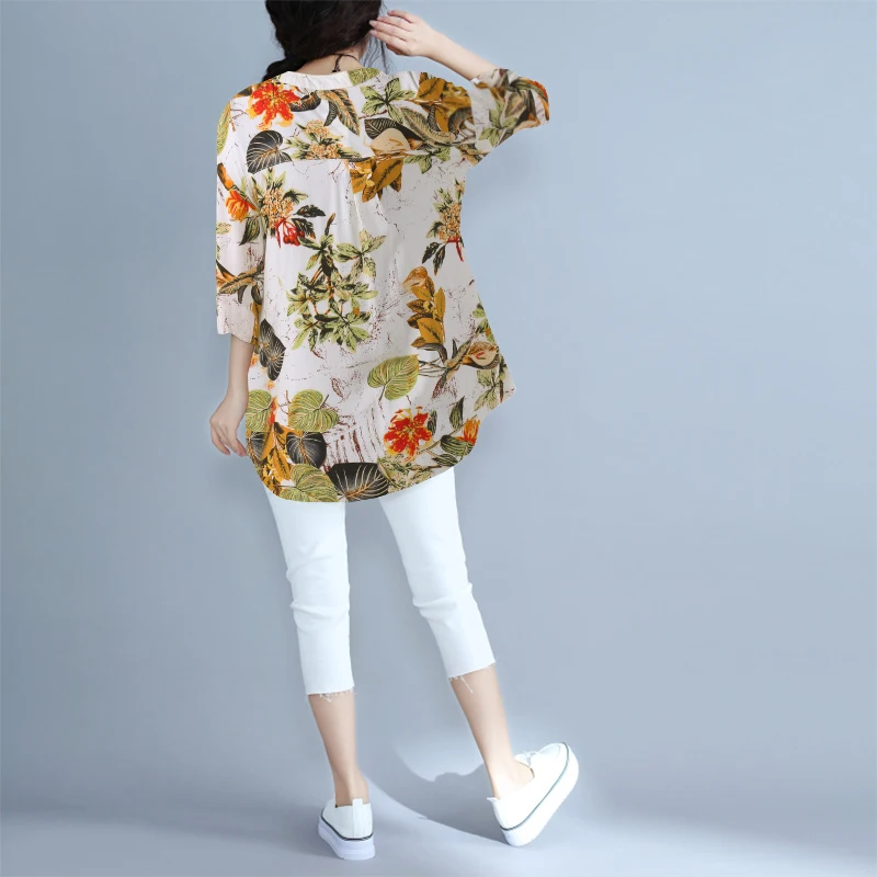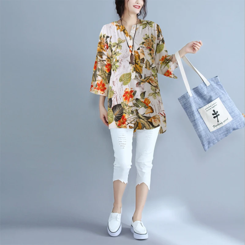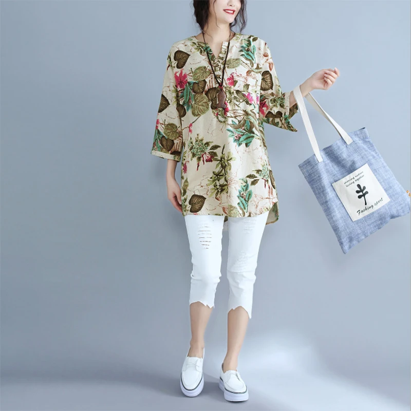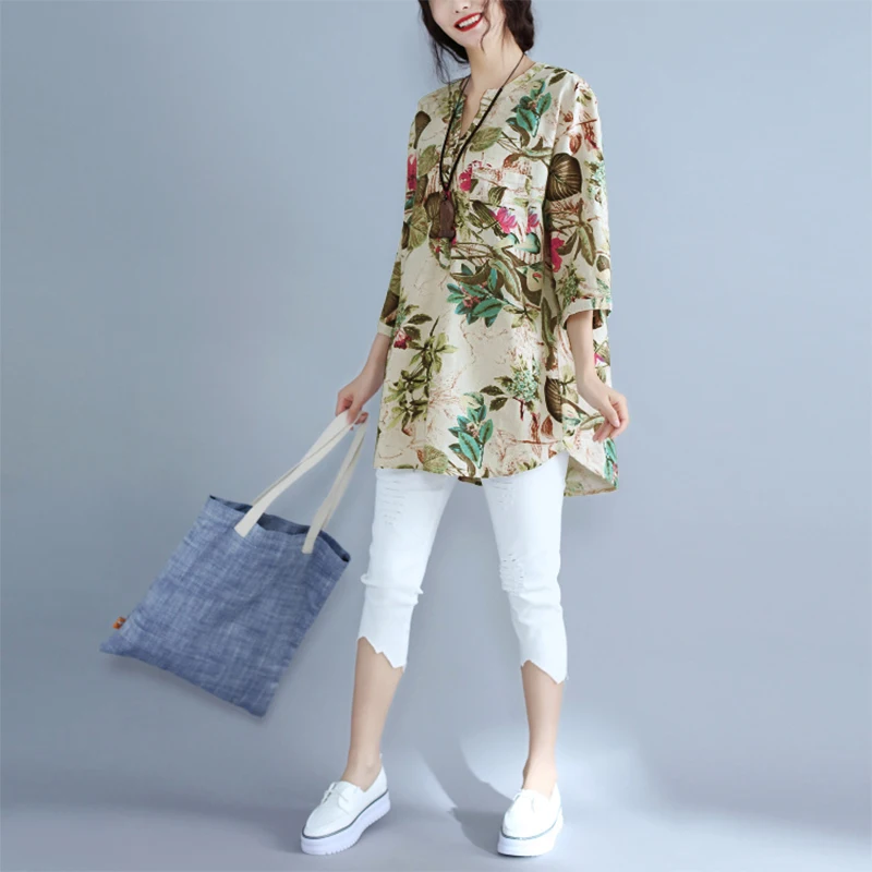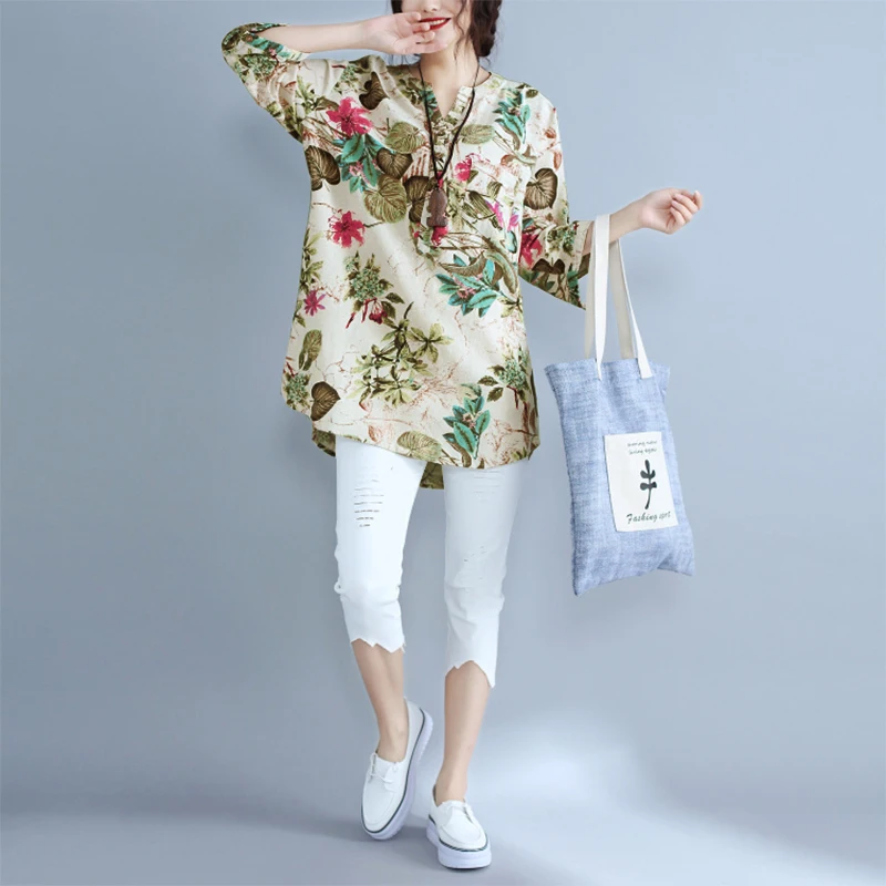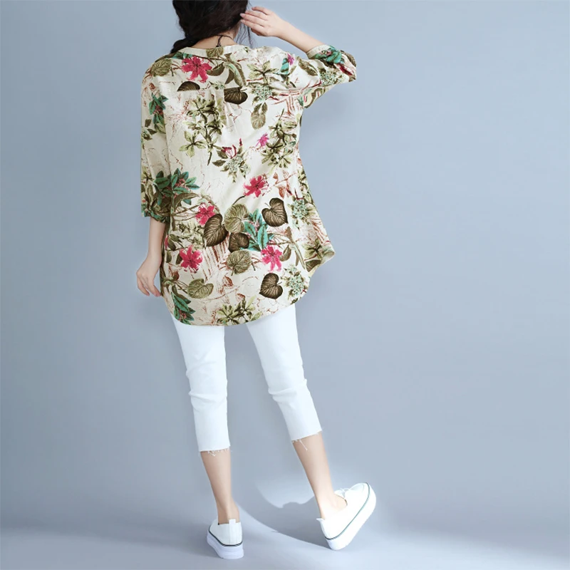 2018 ZANZEA Women Summer 3/4 Sleeve Boho Floral Printed Casual Blouse Cotton Linen Shirt Loose Party Beach Top Blusas Plus Size