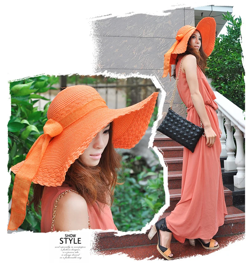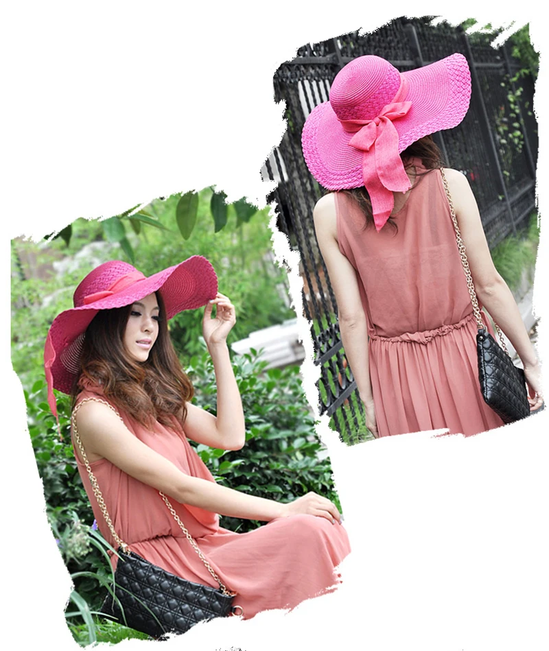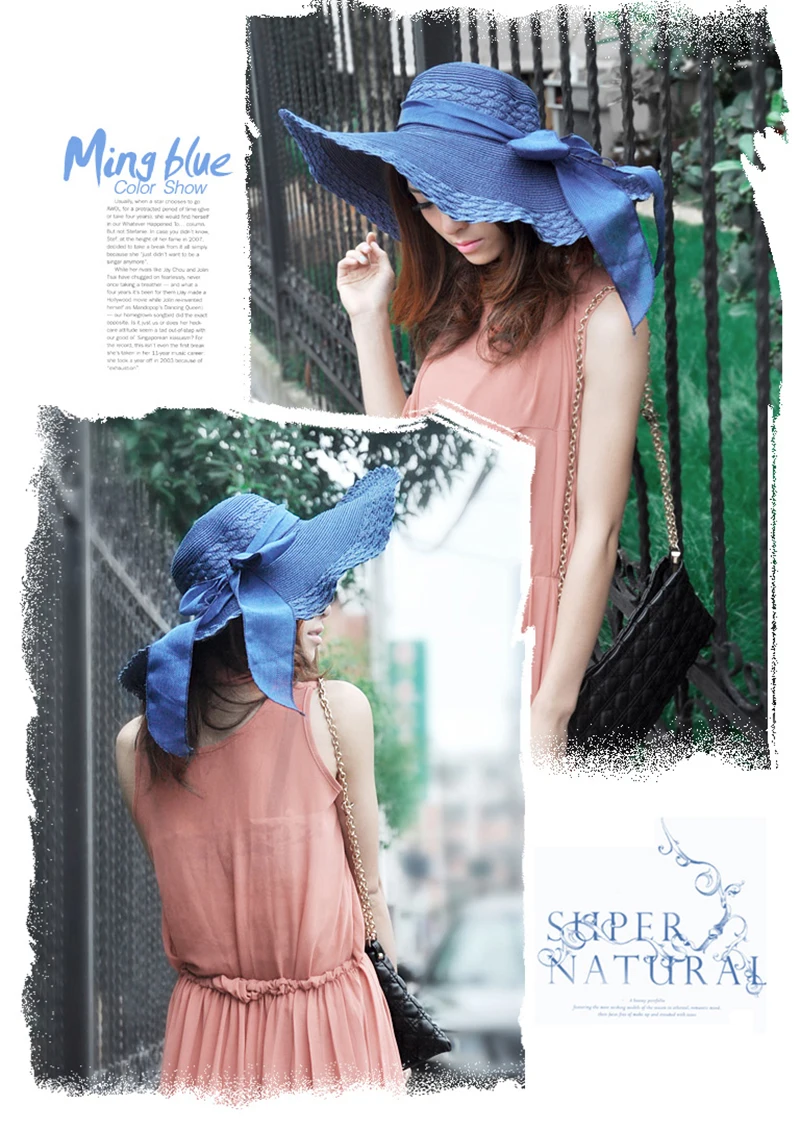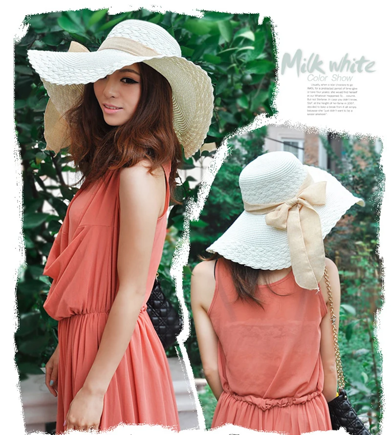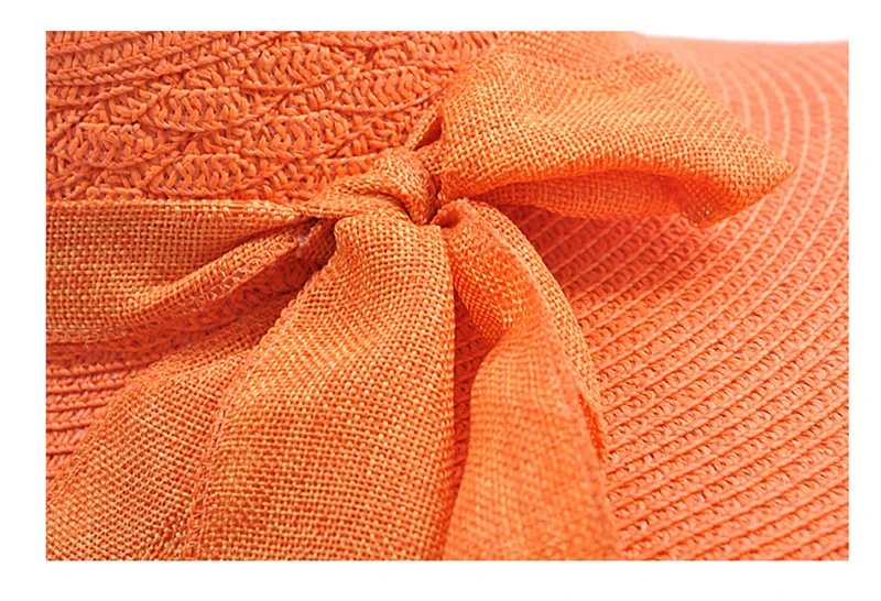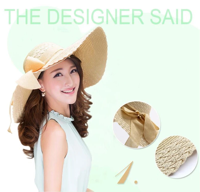2018Korean Lady Elegant Sun Caps Ribbon Bow Casual Summer Hat Straw Beach Hat UV Protect Foldable Dome Top Sun Chapeau For Women