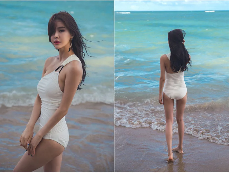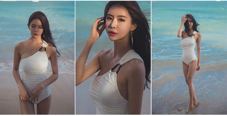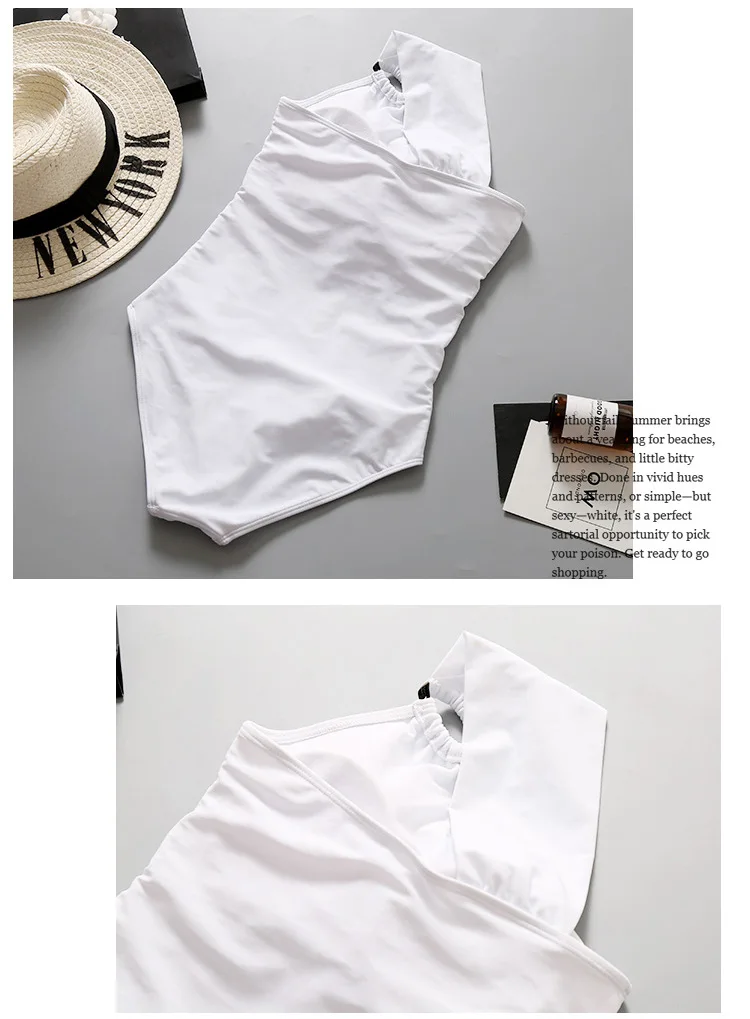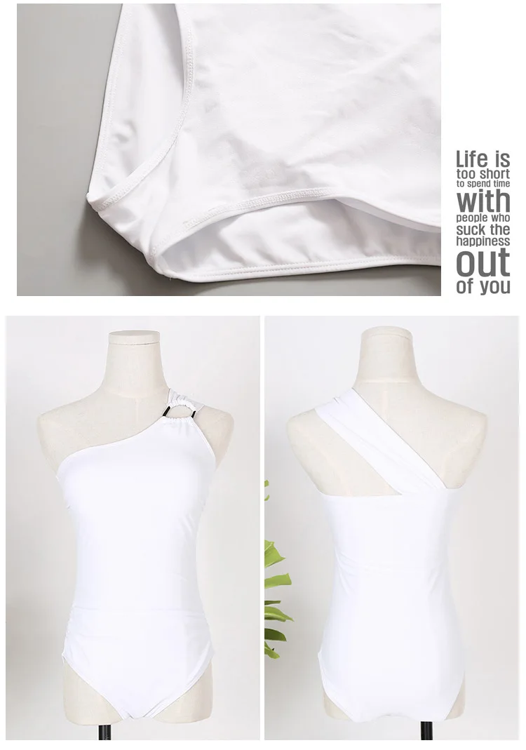 2018Sexy One Piece Swimsuit Women White Hollow Out Bathing Suits Charming Single Shoulder Strap Beach Swimwear Vintage Monokini