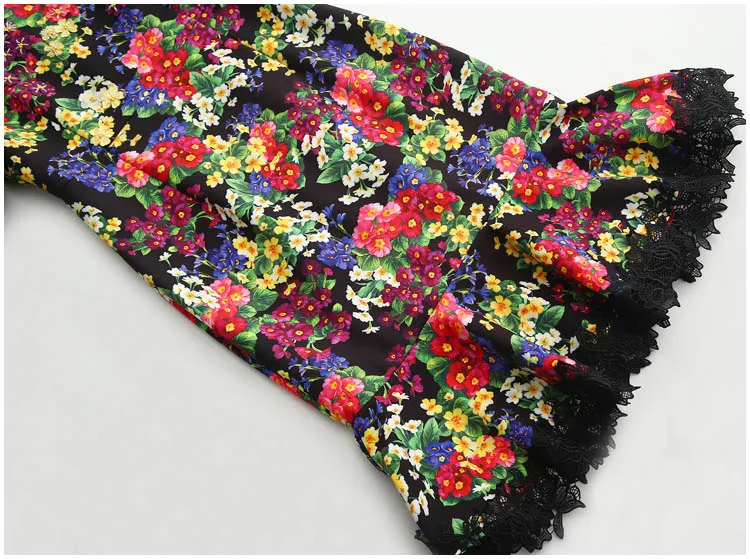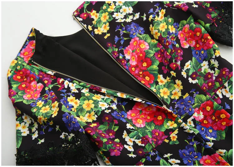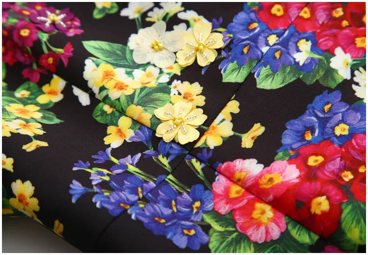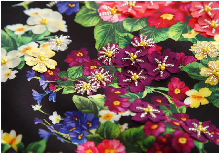 2019 New Summer Designer Women European And American High-end Three-dimensional Beads Flower Print Lace Patchwork Mermaid Dress