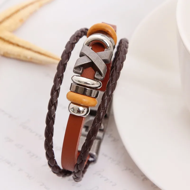 20cm High Quality Women Multi-layer Leather Bracelet Gothic Style Cross Charm wrap bracelets 2015 Bijouterie Unisex