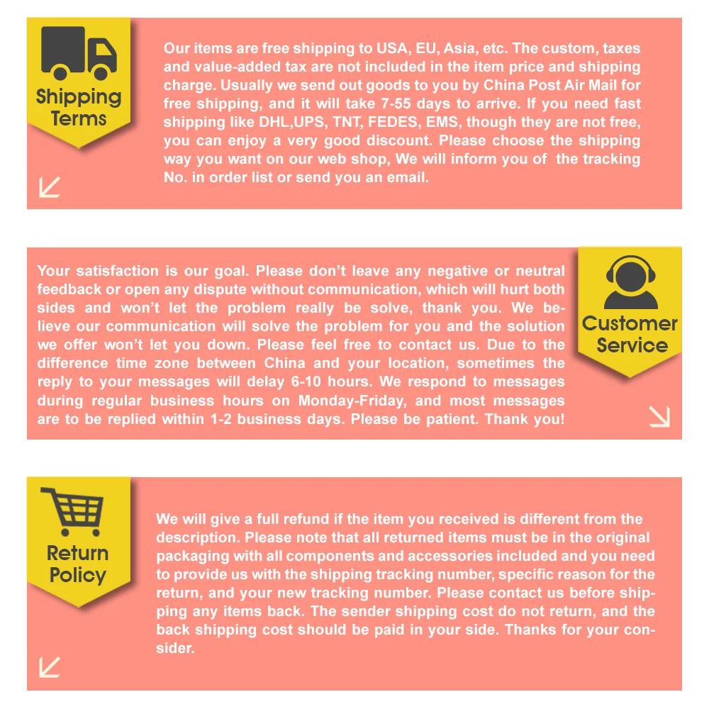 We are not responsible for any custom fees once the items have shipped. By purchasing our products, you consent that one or more packages may be shipped to you and may get custom fees when they arrive in your country.