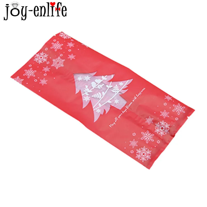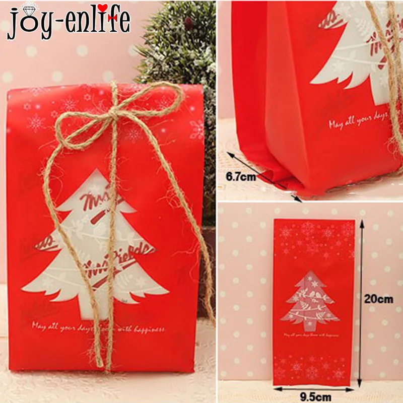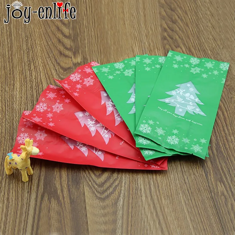 20pcs Red Green Merry Christmas Tree Snowflake Plastic Bag Candy Dessert Bags Wedding Christmas Party Kids Gift Bags Supplies