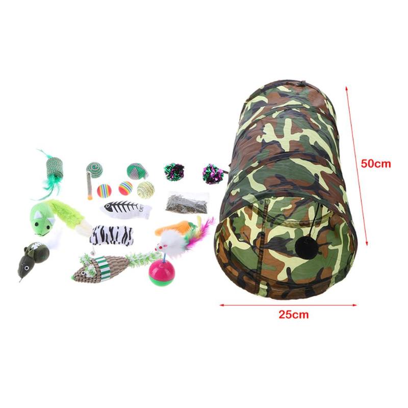 20pcs/set Folding Pet Play Toys Tunnel Tubes Collapsible Feather Tease Cat Sticks Balls Kitten Mint Toys for Small Pets Rabbits