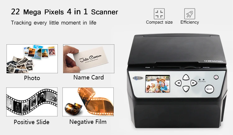 3.Film Scanner—-22 Mega Pixesl(interpolation), 14Mega pixels CMOS sensore, the highest quality in the market,Support 135 35mm negatives, Slides,3×5, 4×6,5×7 inches Hard copy photos and Business card,Photo Film Scanner,Negative Converter,Digital Film Scanner