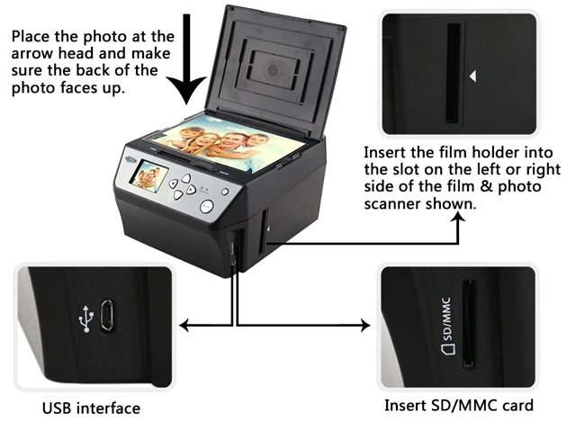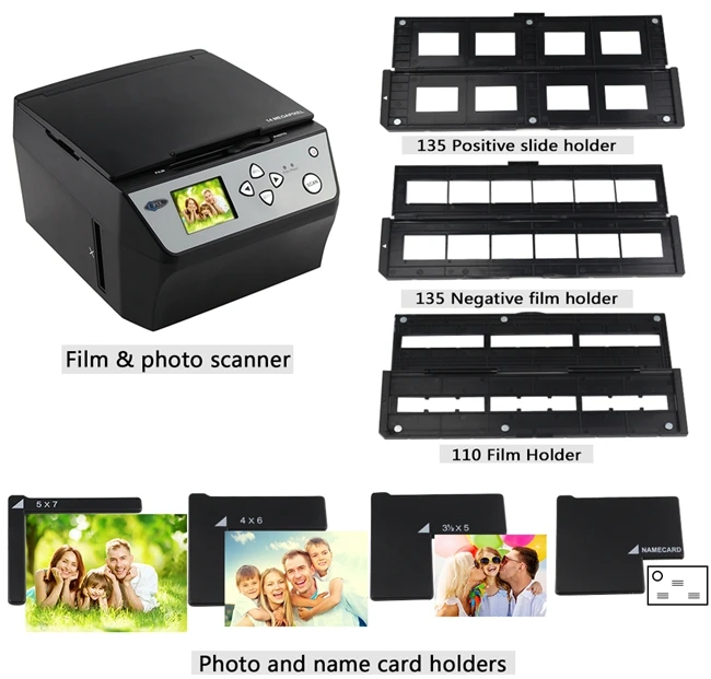 3.Film Scanner—-22 Mega Pixesl(interpolation), 14Mega pixels CMOS sensore, the highest quality in the market,Support 135 35mm negatives, Slides,3×5, 4×6,5×7 inches Hard copy photos and Business card,Photo Film Scanner,Negative Converter,Digital Film Scanner